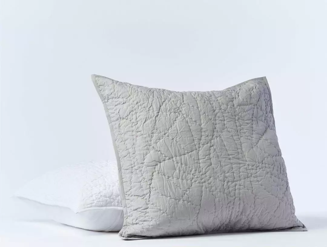 Inspired by the sculptural art of basket-weaving, this organic cotton quilted sham mimics the imperfect, organic curves of nature. Handstitched kantha thread is quilted throughout, creating a reversible product with contrast stitching that stands out against the undyed backing. Like crinkled percale fabric, this woven quilt has a relaxed drape that embraces its casual feel with every wash.