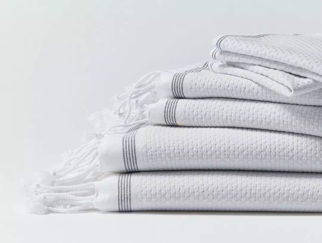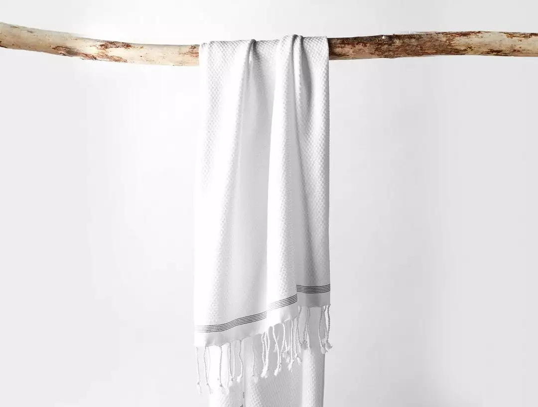 Lighten the load when drying off at home and away with statement-making style and fast-drying innovation. The Mediterranean Collection offers a traditional Turkish flat-weave that’s delightfully lightweight, yet still highly absorbent. Woven from yarn dyed organic cotton and edged in hand-knotted fringe.