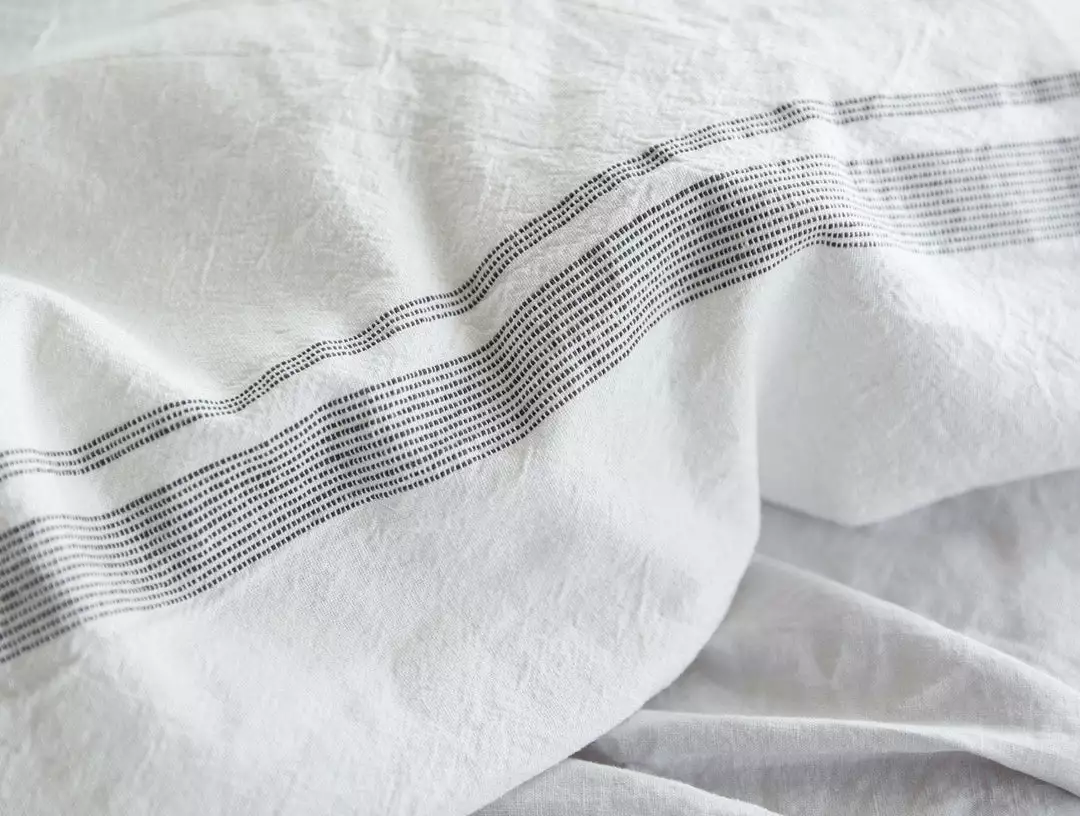 Variations in the size and weight of organic cotton yarns mix with tension in the warp while weaving to create a distinctly subtle texture throughout this detailed duvet cover. Contrast stripes run along the sides of your bed. Underside is backed with a plain weave. Complete the look with the matching Sonoma Shams.