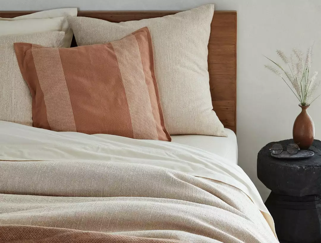The subtle texture woven throughout this mid-weight duvet cover honors the craft of weaving. Inspired by the techniques of mid century textile artists, this detailed weave moves weft yarns casually through the warp to create a textured hand-feel that’s reminiscent of the rock formations along Toro Canyon. Underside is backed with plain weave percale. Complete the look with the Toro Canyon Shams.