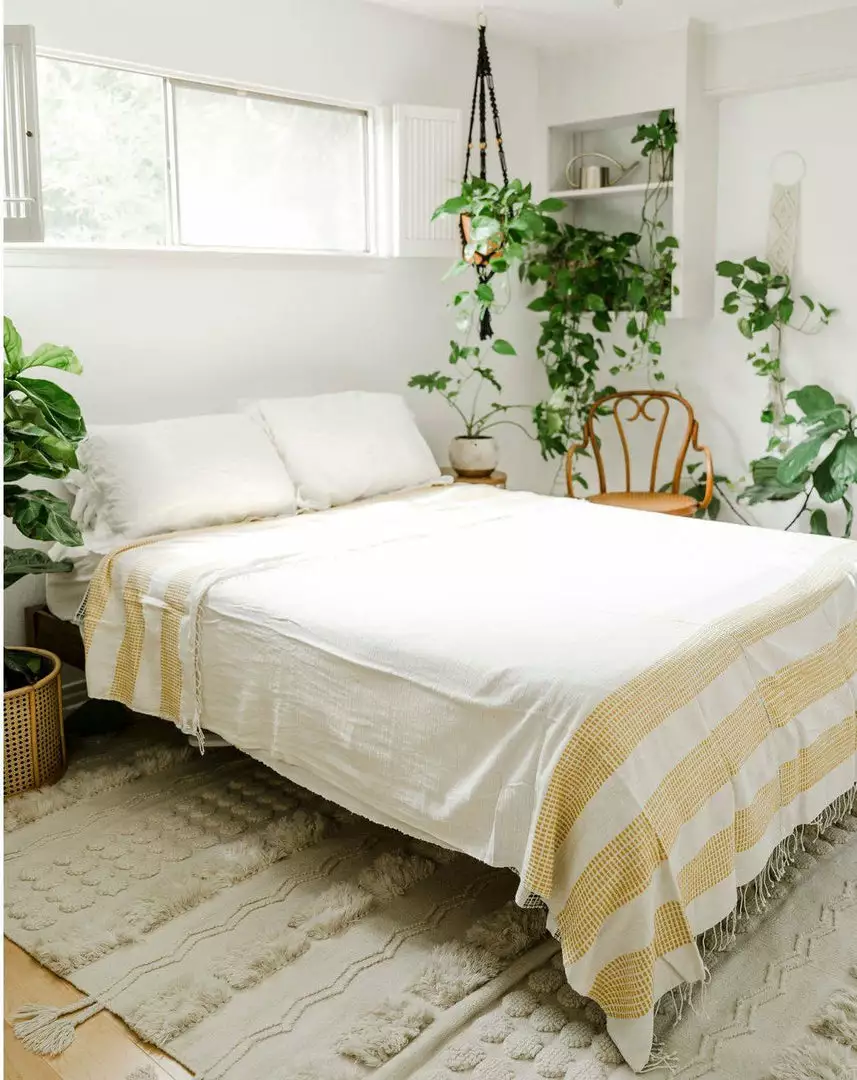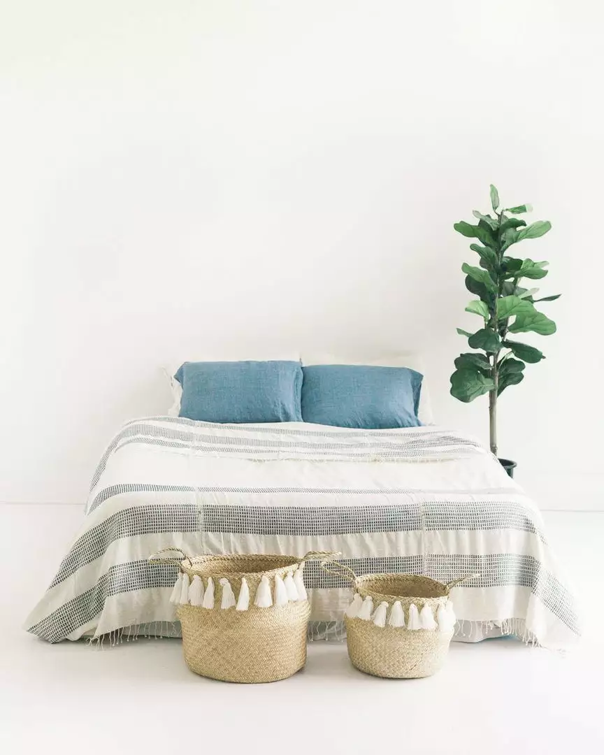 This versatile lightweight queen blanket showcases the best in luxury bedding. Each piece is meticulously hand-woven in Ethiopia and features a bold color-blocked dotted pattern. Three separate panels are then bound together using traditional stitching techniques. Hand-spun Ethiopian cotton offers a uniquely rich texture that will continue to soften with each wash and dry.