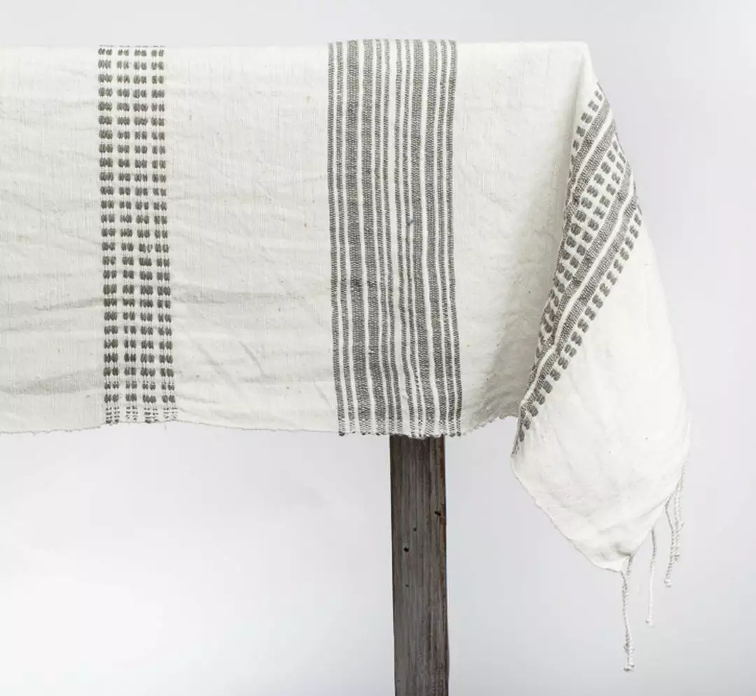 Fair Trade goods providing economic empowerment to artisans in Africa. The beautiful striped Aden design makes a statement of any table. Exquisitely hand-woven in Ethiopia from local hand-spun cotton, this piece offers rich texture that is durable and easy to care for. Watch the hand-spun cotton fibers become softer with each machine wash and dry.