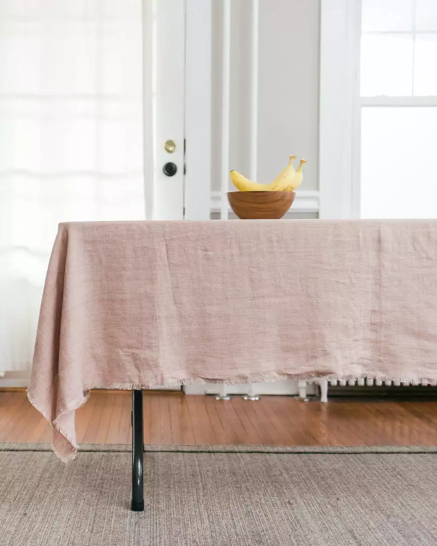 In a quiet village in southwest India, this linen is meticulously woven, dyed and stone washed to perfection. Each is made from the finest imported Belgian flax and represents hours of artisan work. This versatile piece is a generously sized 84 x 60 inches and doubles perfectly as a tablecloth or lightweight throw. Frayed edges add texture to a classic and timeless tablecloth.