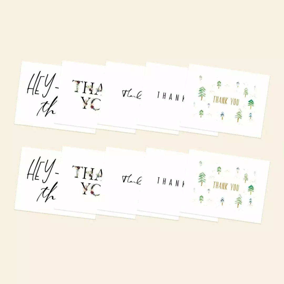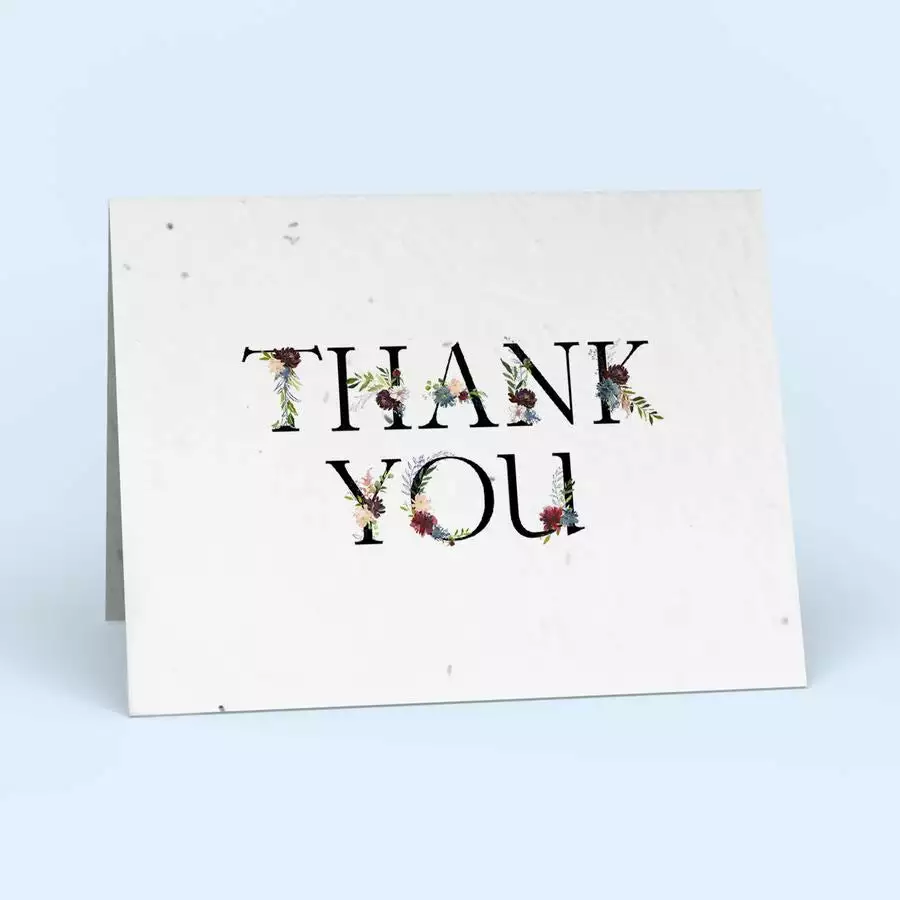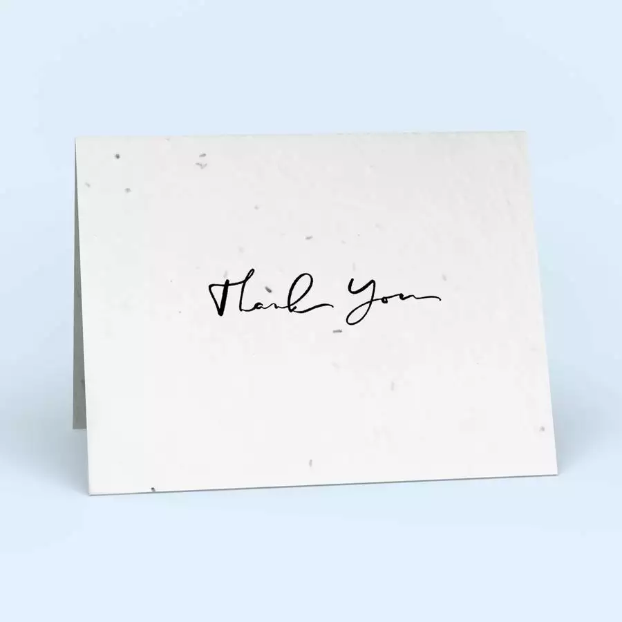 Keep sustainably made thank you notes on hand with this 10 pack. Watch your recipients light up when they realize that your meaningful words can grow a garden of wildflowers. Printed to order to reduce waste. Cards contain a non-invasive wildflower seed mix that grows Alyssum, Catchfly, Siberian Wallflower, Black-Eyed Susan, and Baby Blue Eyes.