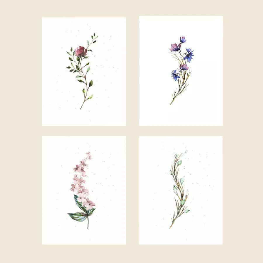The Assorted Botanical Pack is the perfect set of cards for everyday occasions. With this pack, you will get two of all four classics, watercolor designs for a total of 8 cards. Watch your recipients light up when they realize that your meaningful words can grow a garden of wildflowers. Printed to order to reduce waste. Cards contain a non-invasive wildflower seed mix that grows Alyssum, Catchfly, Siberian Wallflower, Black-Eyed Susan, and Baby Blue Eyes.