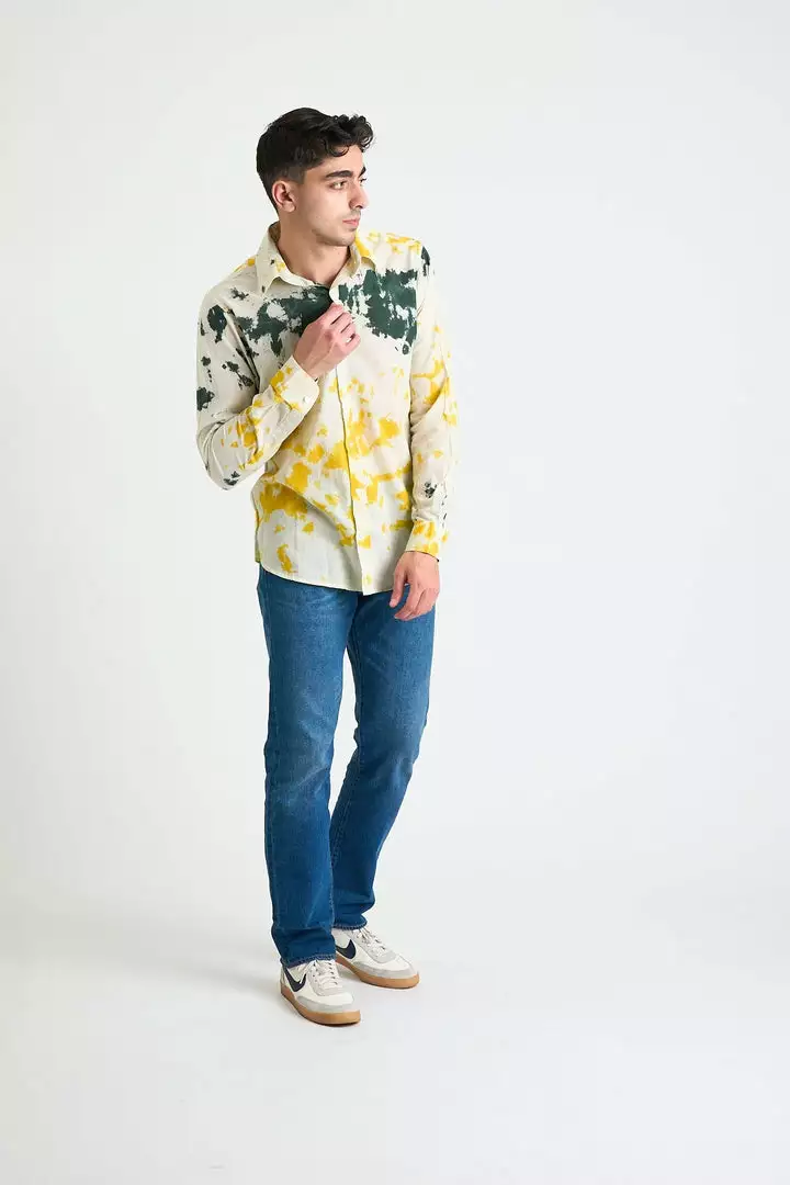 The Tie Dye Amir Shirt is a bold take on a classic long sleeve button down. Made in small batches with traditional hand dyeing techniques, which results in natural inconsistencies giving this shirt an elevated, handcrafted look. Please note that the actual color may differ from the pictures due to computer lighting and hand-made nature of the fabric.
