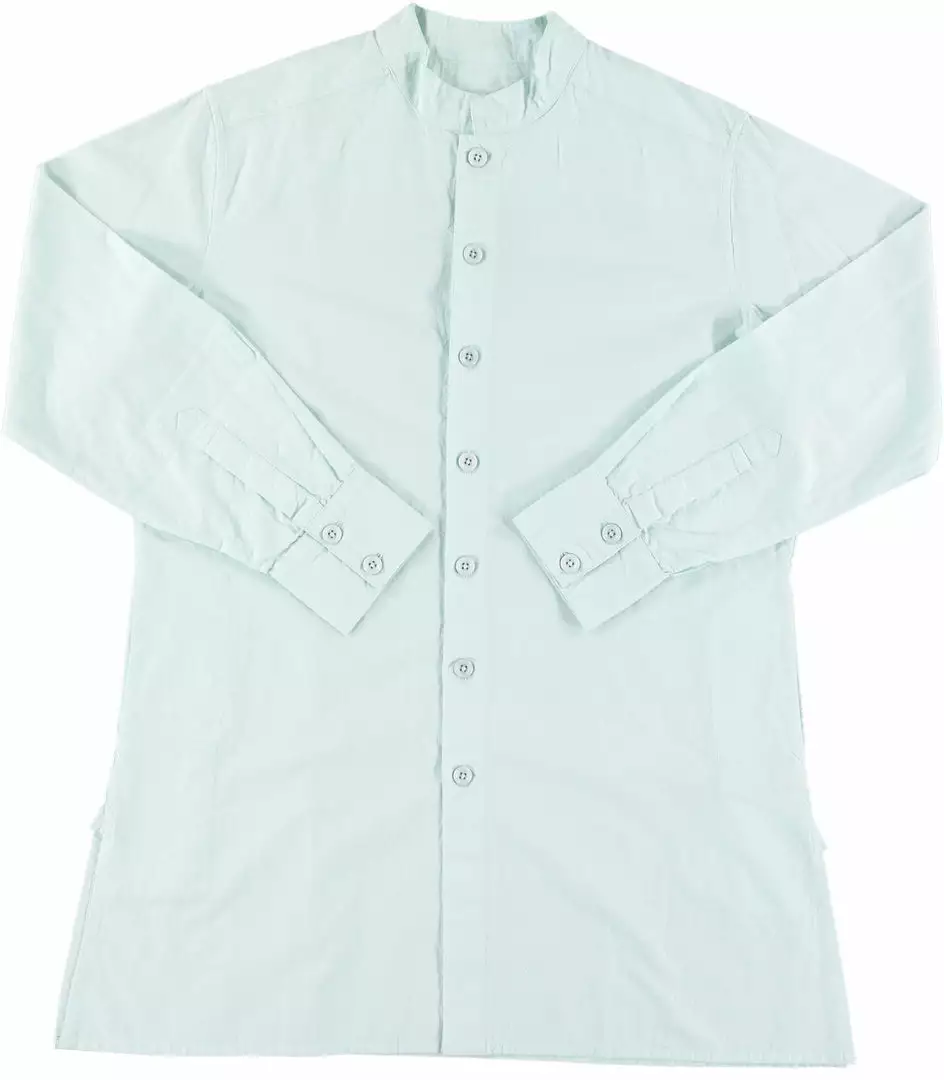 A men’s oversized heritage-style shirt in a pastel blue color. With a full button-down front, mock collar, and long sleeves, the Jaipur can be styled both up and down.