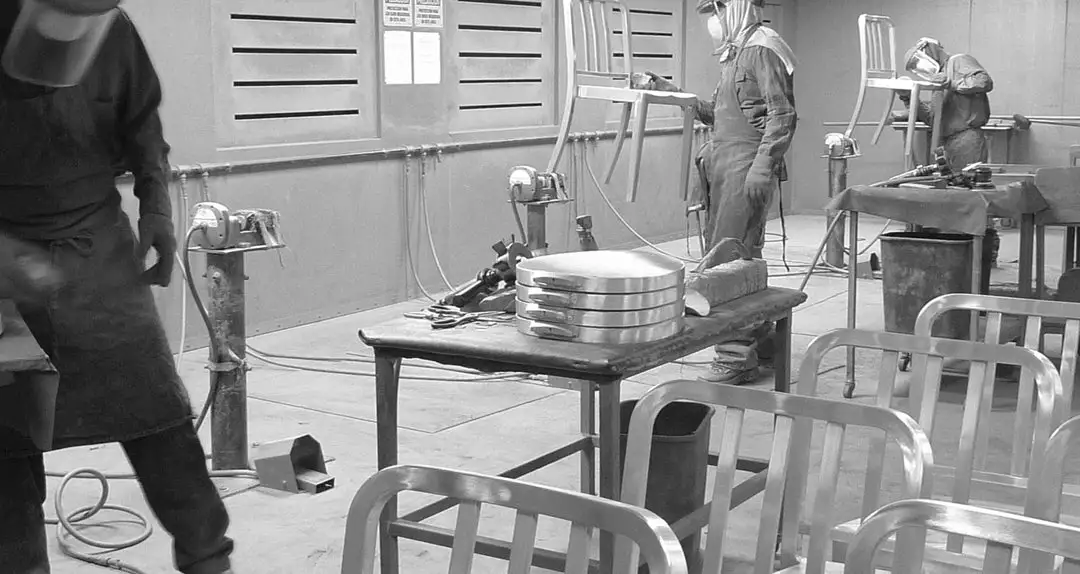 First built for use on submarines in 1944, the Navy Chair has been in continuous production ever since. With the famous 77 step Process, Emeco’s craftsmen take soft, recycled aluminum, hand form, and weld it- then temper it for strength. Finally, the chair is anodized for a durable finish. Emeco guarantees the Navy Chairs for life.