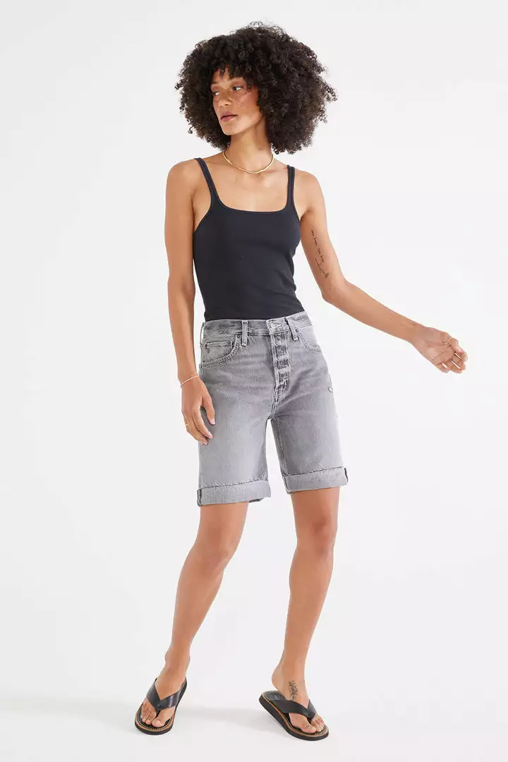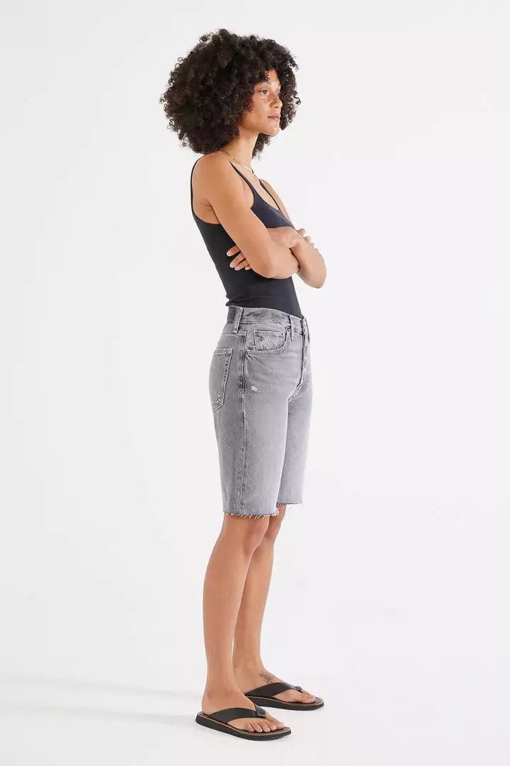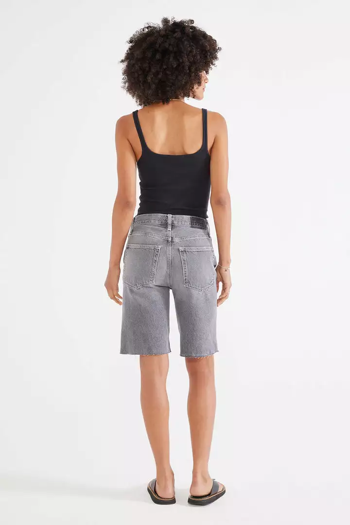 A chic short in an authentic vintage gray wash with subtle abrasion. Fit is easy, sitting comfortably at the waist, with a straight leg finishing just above the knee.