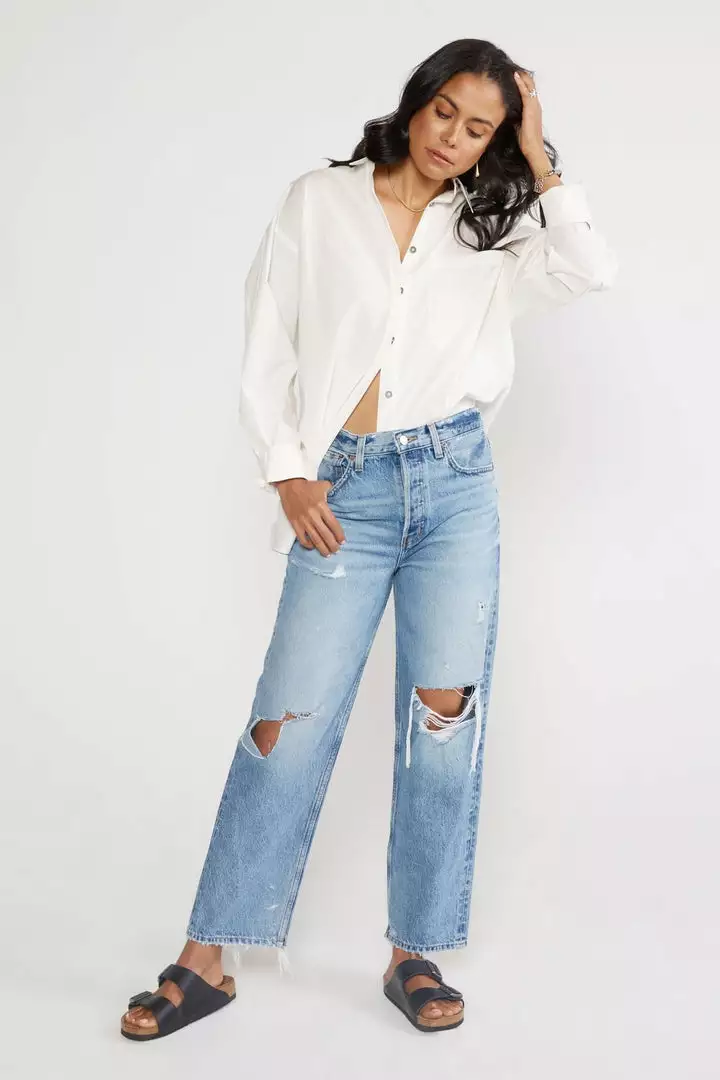 A straight leg jean with a high rise and vintage construction, Tyler is fitted through the hip and straight through the leg. Careful fading and thoughtful destruction add to the authenticity of the style.