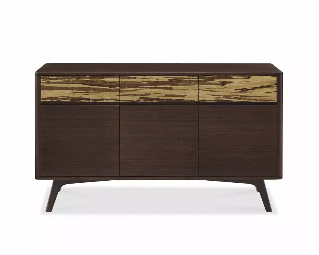 The Azara sideboard features modern architectural lines and stunning drawer fronts. Beautifully finished on all four sides, the Azara sideboard includes five-sided drawer boxes with English dovetail, sleek recessed drawer pulls, under mount hardware, and soft closing drawers.
