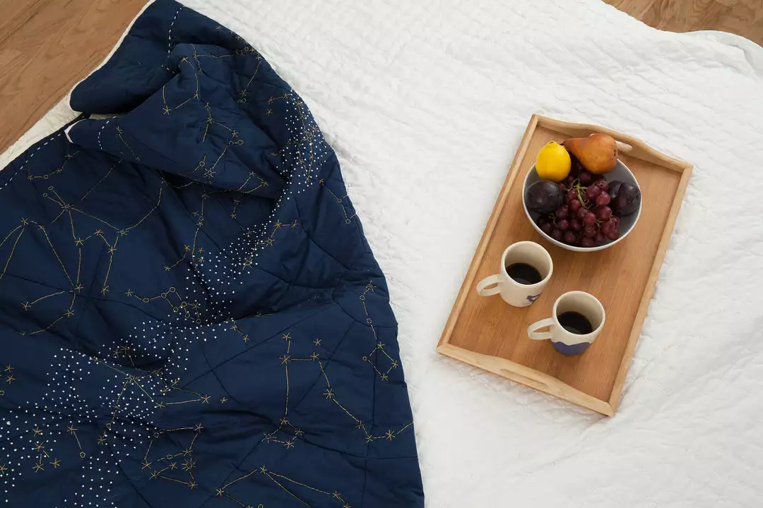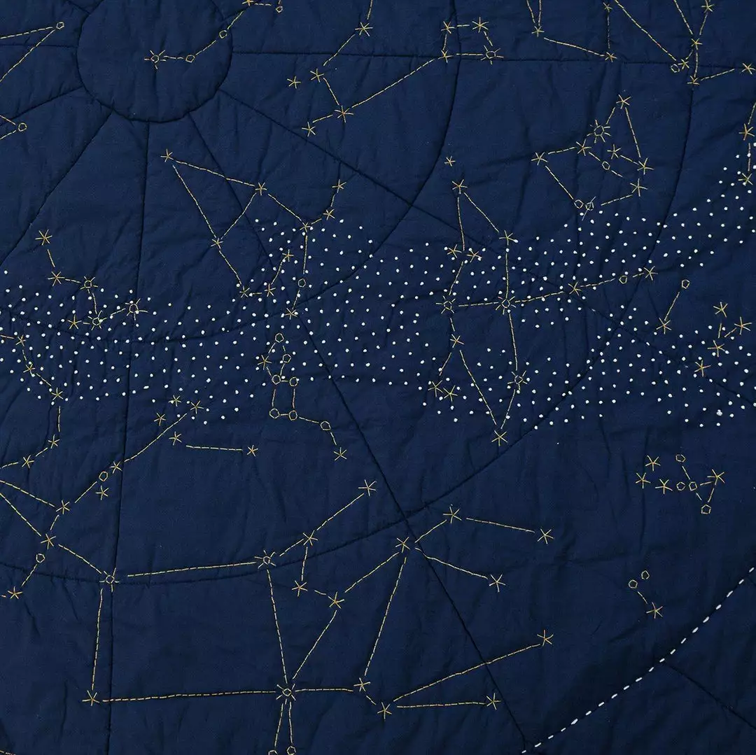 This cozy quilt depicts a global view of the Northern Hemisphere as if you were standing at the North Pole. Wrap up in this stunning, timeless, and organic quilt or use it as a show stopping wall hanging.