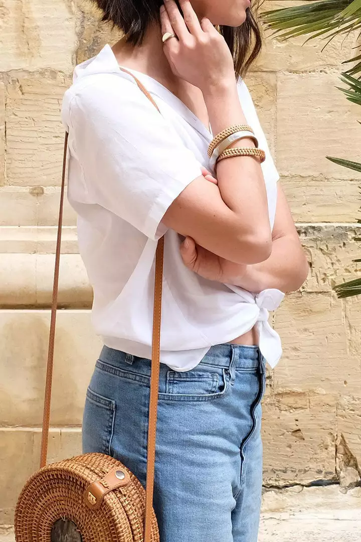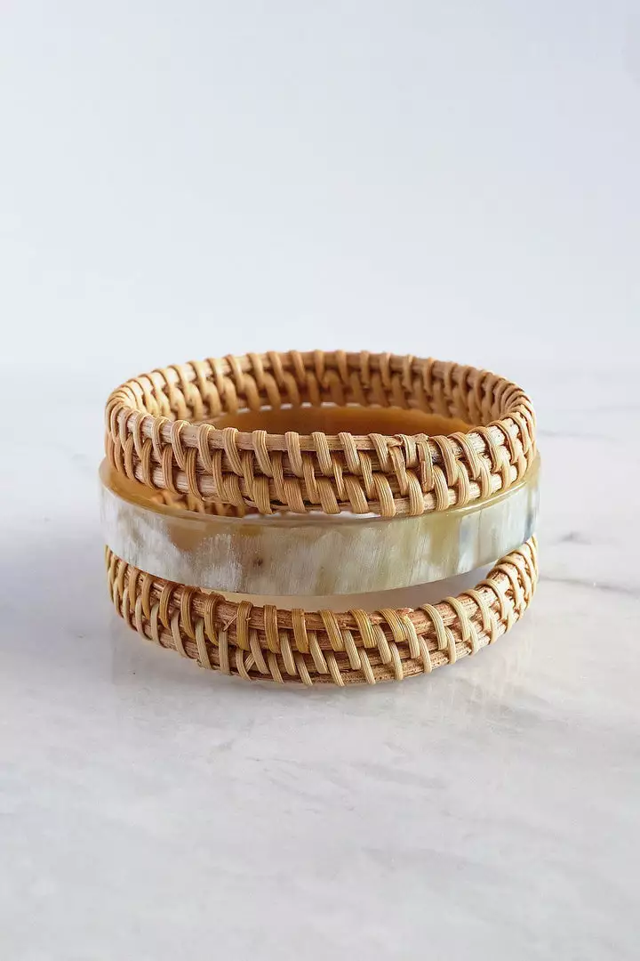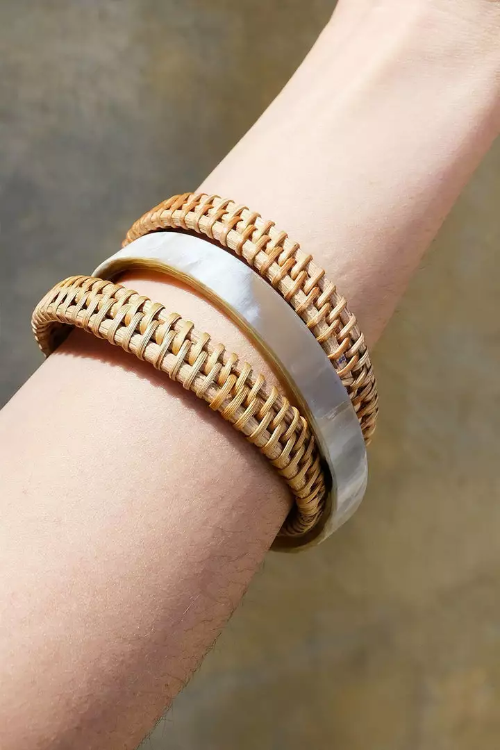 Thoughtfully selected, Hathorway uses handwoven rattan and ethically-sourced buffalo horns as the primary material because it is a byproduct from the food industry. This bracelet is made using a chemical-free process. This is a true one-of-a-kind piece. These materials are lightweight and comfortable to wear throughout the entire day and evening.