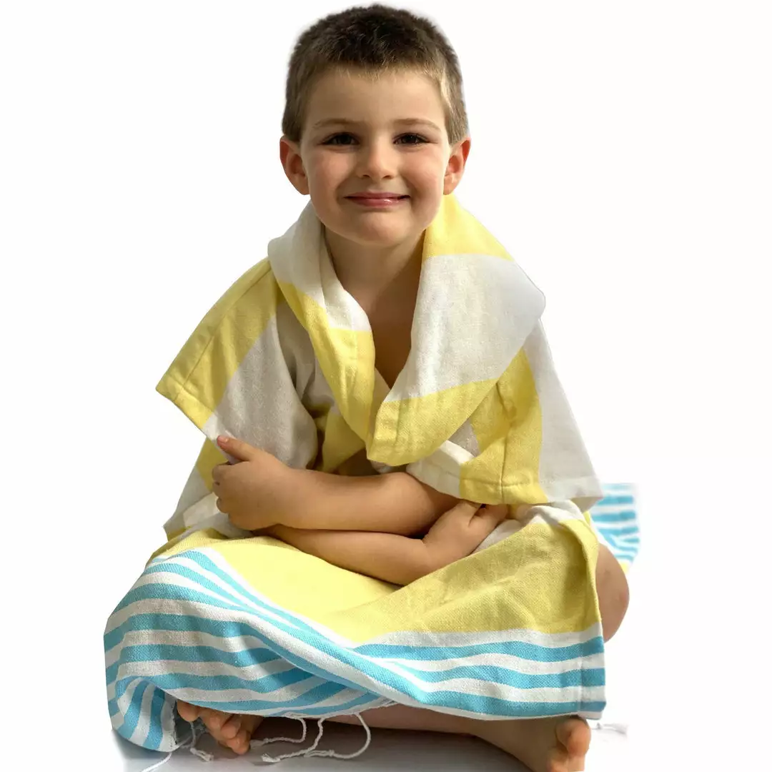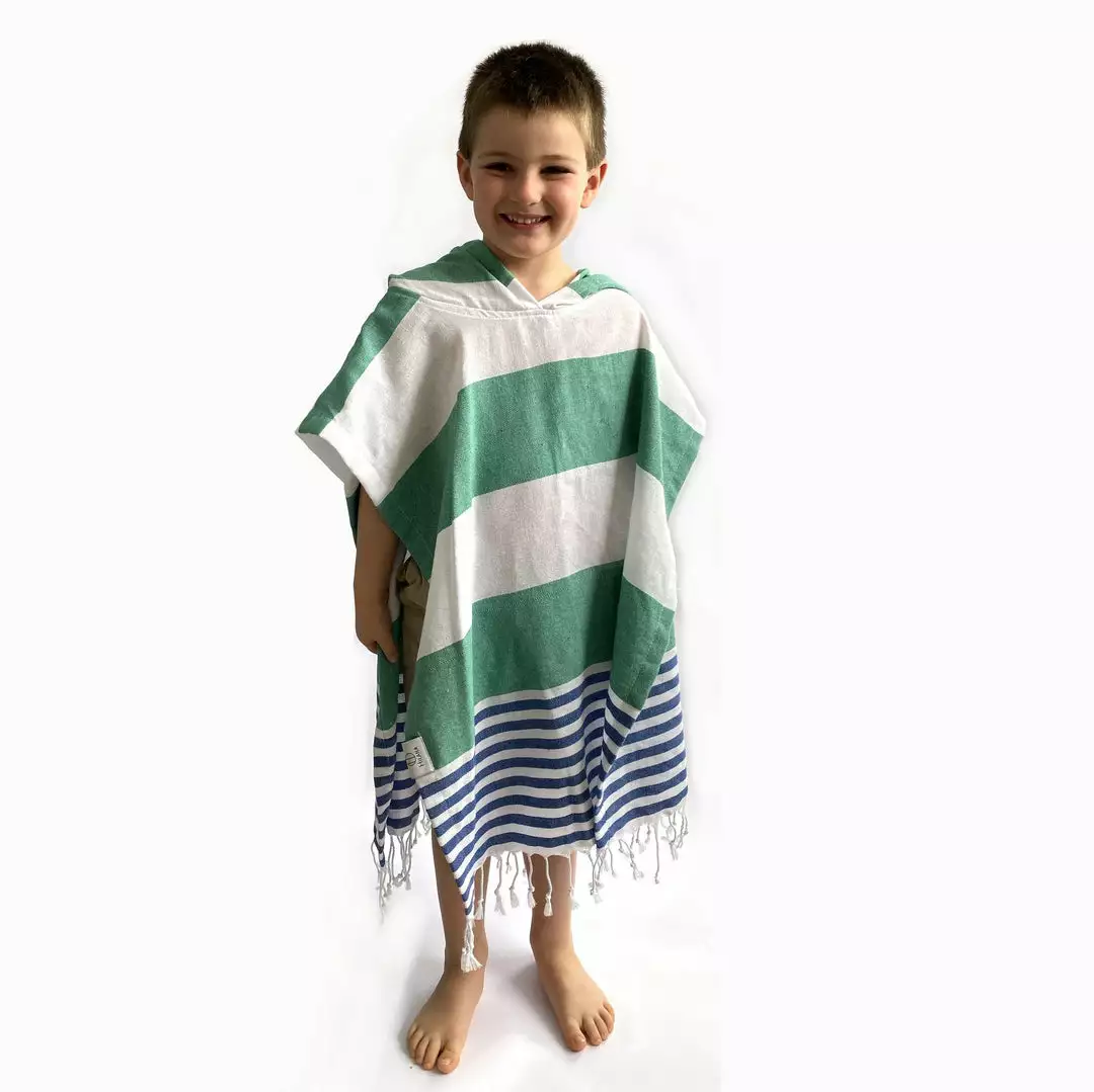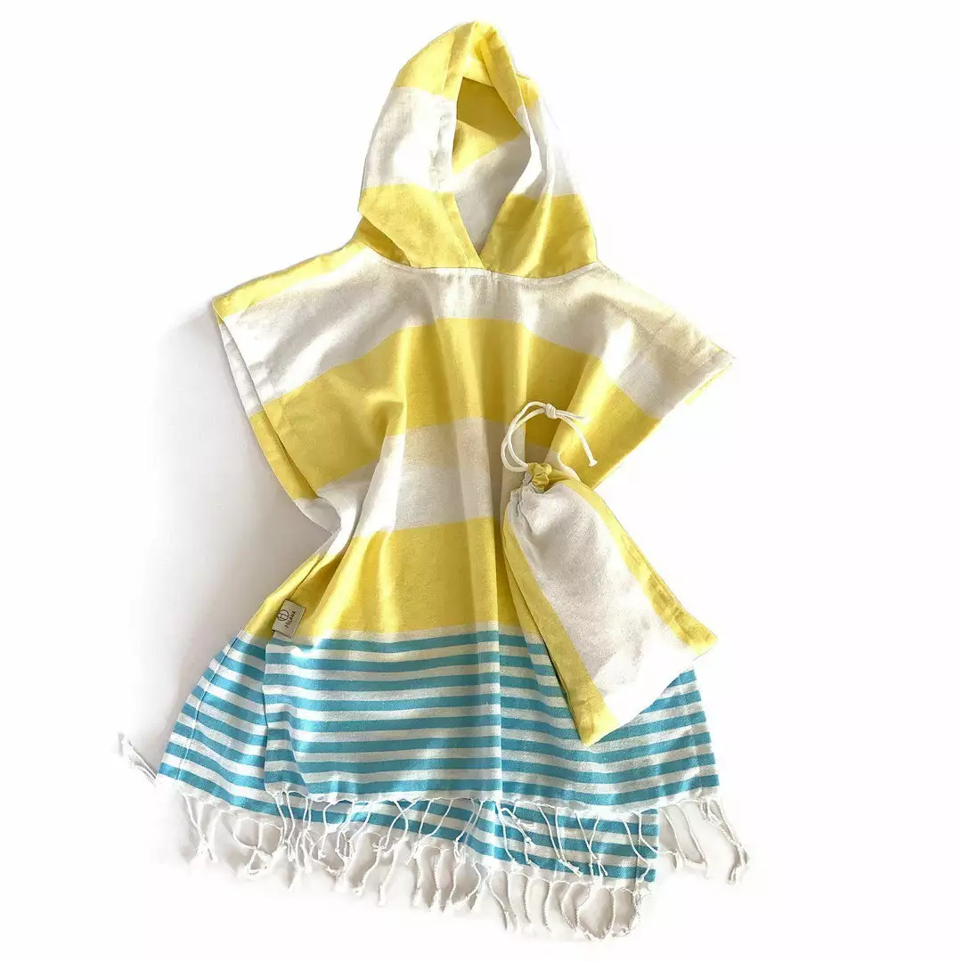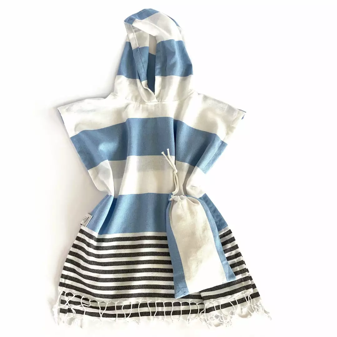 Hilana hooded ponchos are a real game changer for summer days by the pool, at the beach or after the bath. Ultra absorbent and quick dry to warm them up fast. Made from recycled cotton, durable versatile and super soft, keeping children safe from the sun.