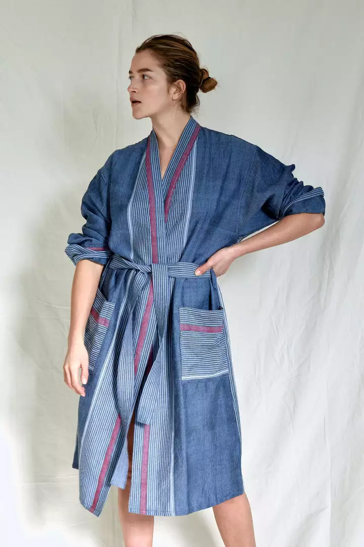 Crafted on the coast of Turkey this robe is hand-loomed using traditional techniques and woven with 100% premium Turkish cotton. Similar to a Turkish towel, it is highly absorbent, lightweight, eco-friendly, and quick to dry.
