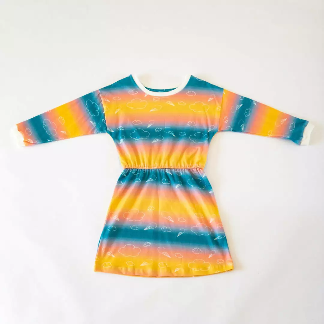 This sky print dress is the perfect cold-weather piece that’s equally comfy as it is cute. Featuring an elastic waistband and cuffed organic-rib sleeves. For every dress that’s purchased, Honey Cake Tiger will plant a tree.