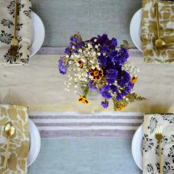 This organic cotton table runner in light colors creates a calm setting. Set up your table with the Calm Table Cloth, Calm napkins and this table runner for when you have a small and special get together. It is also a great table setting for weddings.