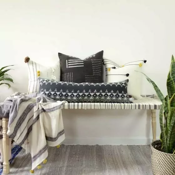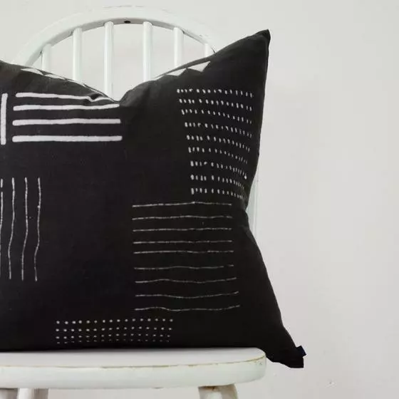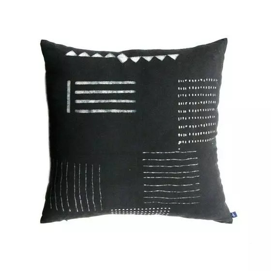 Large black pillow that’s block printed and naturally dyed for your hygge home decor.
