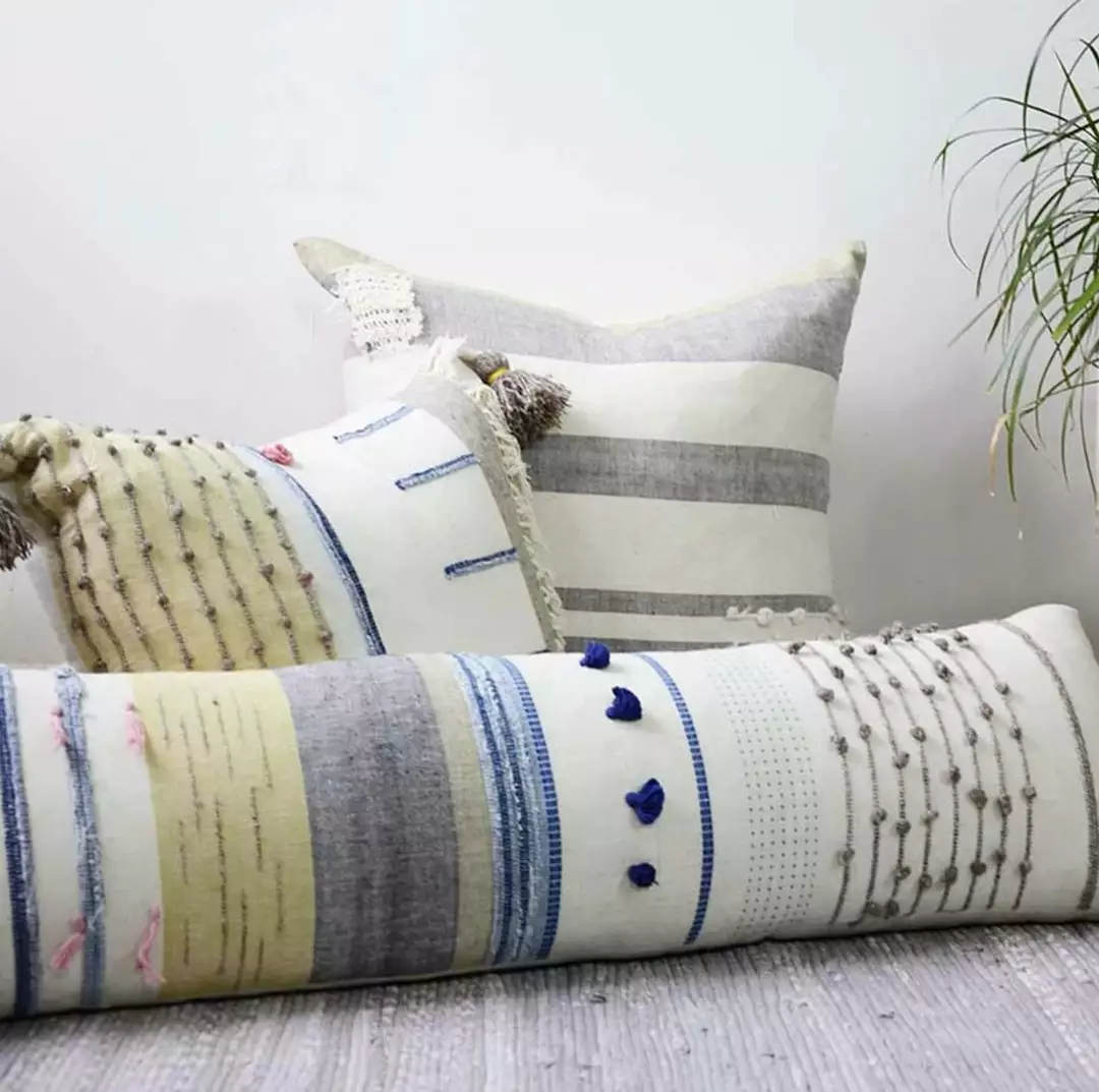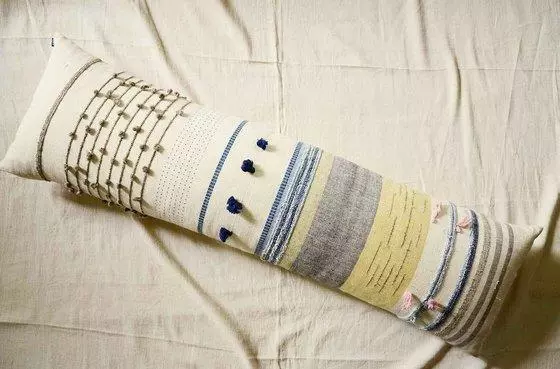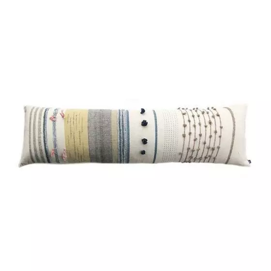 This hygge style long pillow is made with lots of textural details to add a dynamic touch to your sustainable home decor. The fabric is made from organic cotton that is hand spun and woven by artisan weavers on the handloom.