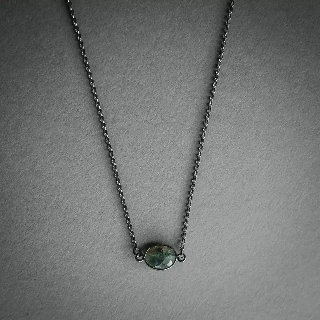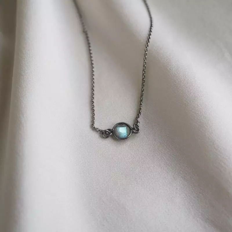 Small faceted labradorite on an adjustable gunmetal chain. Learn more about lab-grown gemstones on Made Trade Magazine.