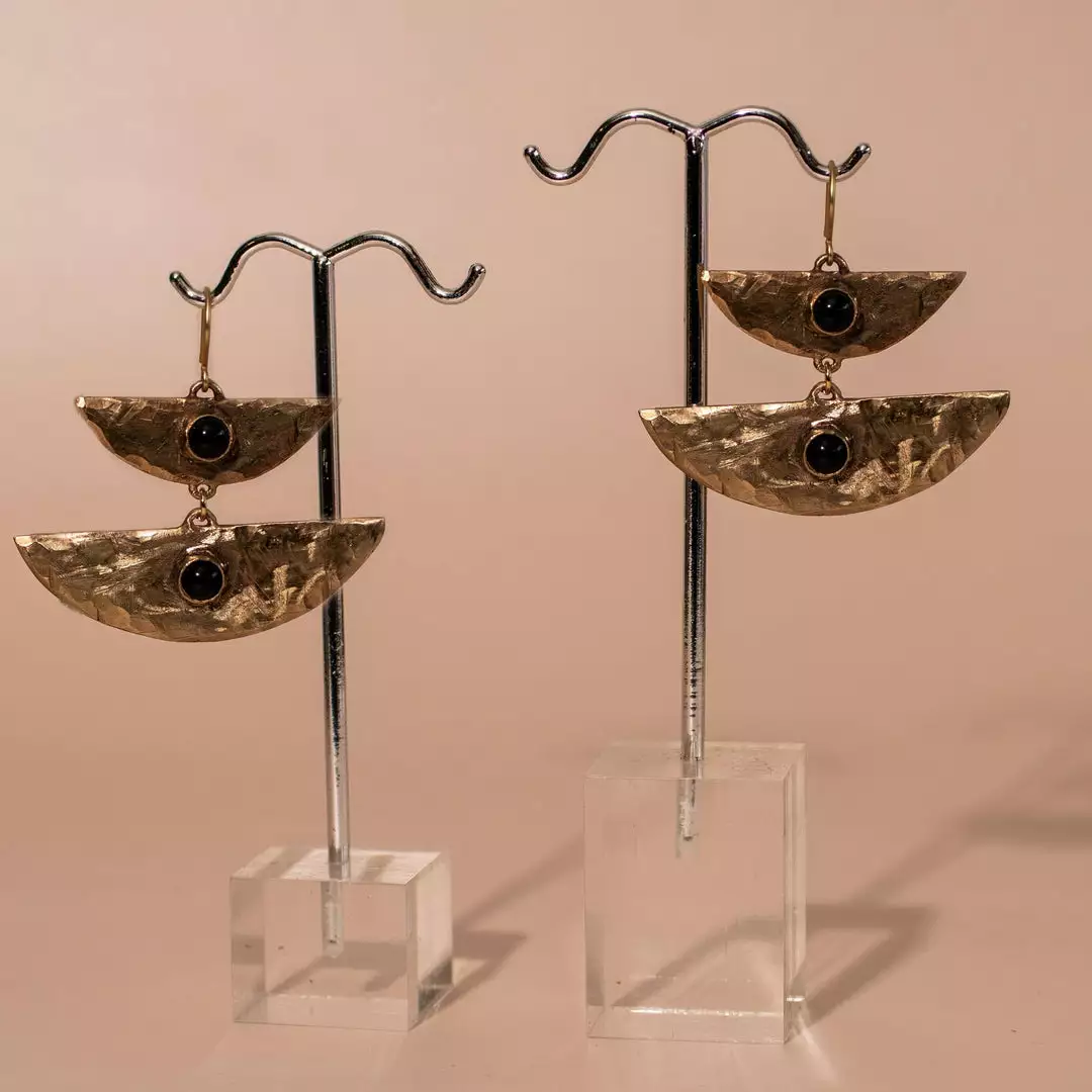 Make a statement with these double-stacked moon earrings made of brass. Choose your favorite gemstone for an accent that perfectly suits you. Learn more about lab-grown gemstones on Made Trade Magazine.
