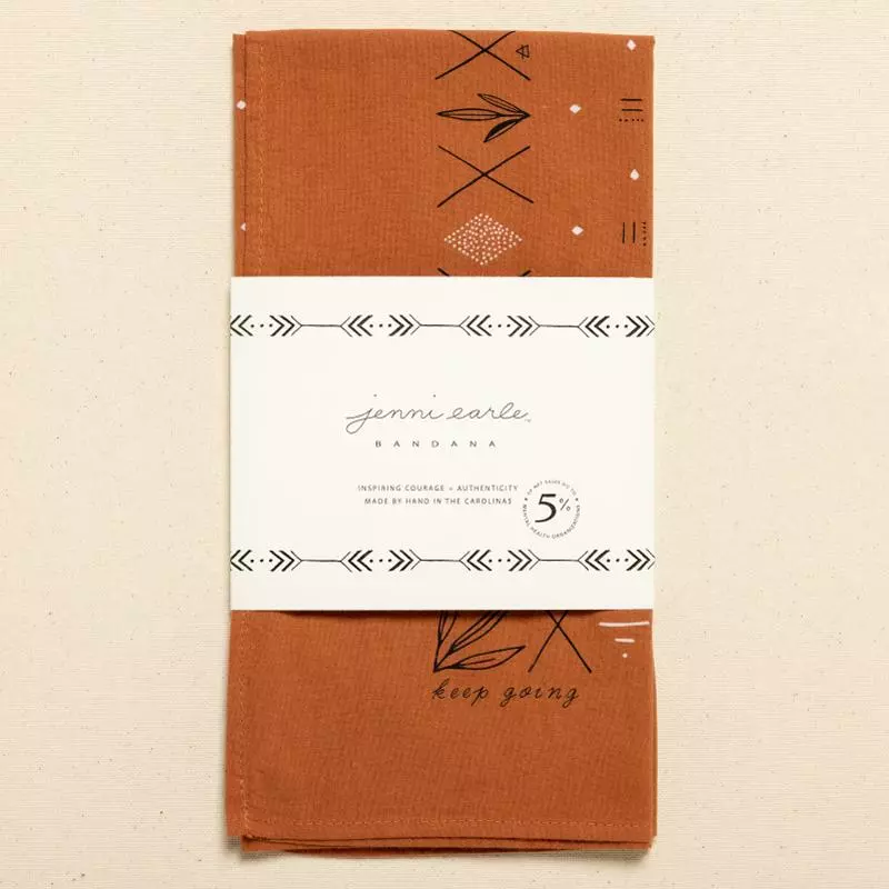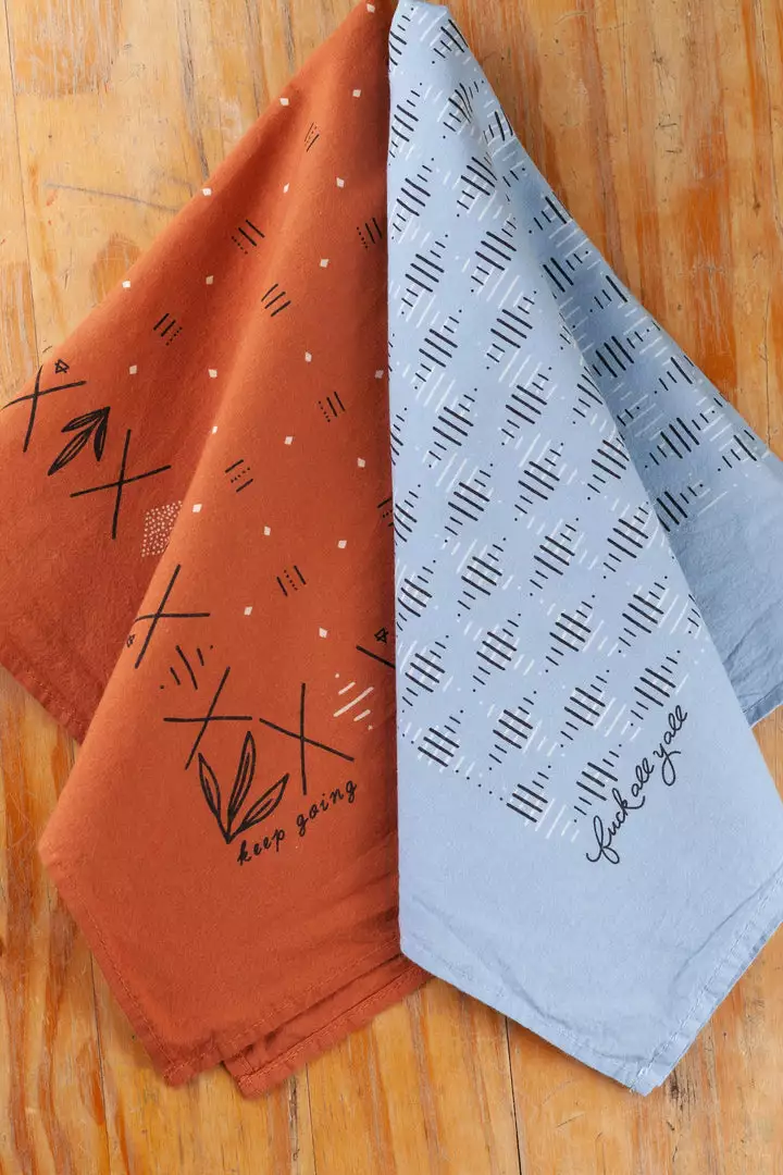 This hand-dyed and printed bandana is designed to be used as a talisman for perseverance. Tie it around your bag, belt loop, or as a kerchief to complete your look.
