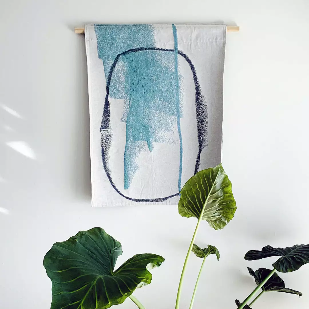 The Kayaking the Reservoir tapestry is based on an original drawing by artist, K’era Morgan created while visiting the Big Bear area of California. The jacquard woven wall art has hemmed edges and a loop on the back for easy hanging. Weighty cotton ensures this tapestry has a tight weave, is sturdy, and hangs evenly.