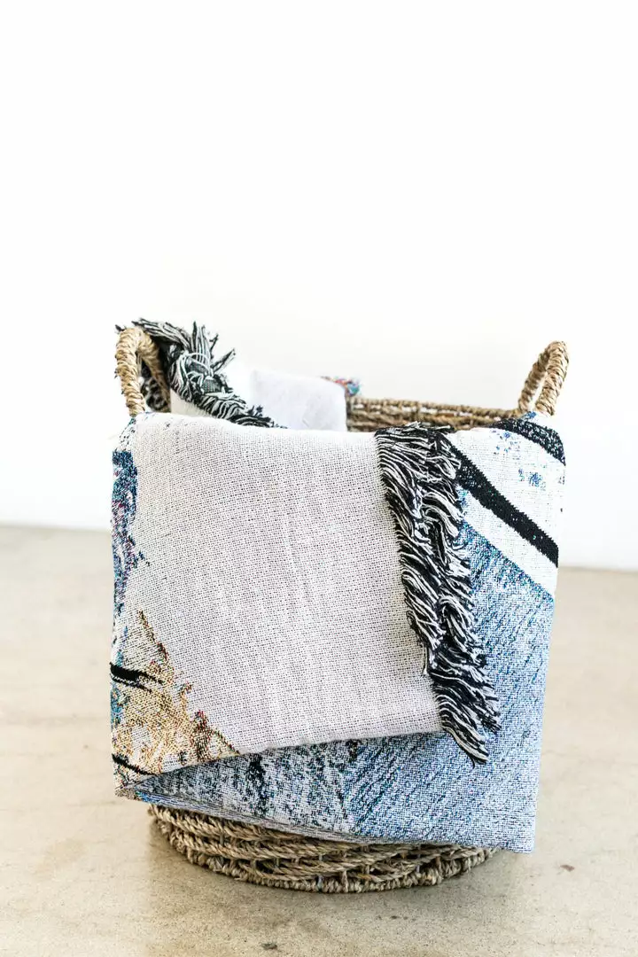 This cozy blanket has a soft and luxurious feel. The Marea Throw’s design is based on an original painting by Los Angeles based artist, K’era Morgan. The heavy Jacquard weave blanket is made to order to reduce waste. Cuddle up with a piece of art.