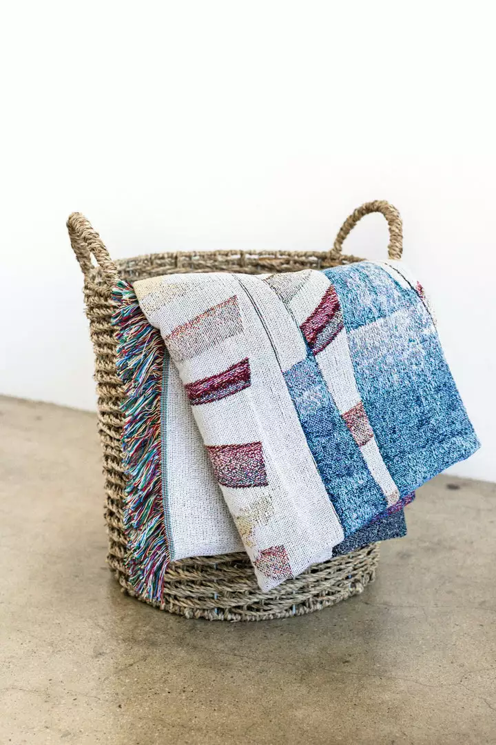 This cozy blanket has a soft and luxurious feel. The Residual Throw’s design is based on an original painting by Los Angeles based artist, K’era Morgan. The heavy Jacquard weave blanket is made to order to reduce waste. Cuddle up with a piece of art.