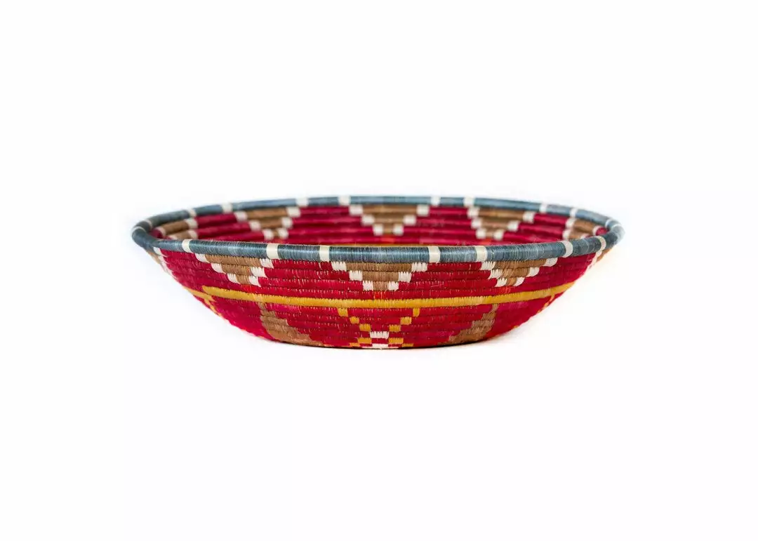 This fair trade basket can be used as a produce bowl, centerpiece, or even a place to display books on your coffee table. Meaningfully and purposefully designed, each basket has a woven loop that allows you to hang it up on the wall as a decorative piece. The sunburst pattern on these baskets is known as the “hope” design. Reflected on the Rwandan flag, this sunburst image stands for the country’s collective hope for a new dawn and brighter future.