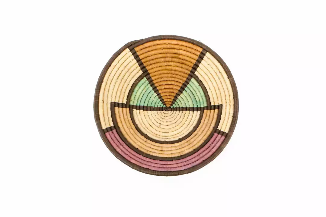 This extra large lilac and neutrals basket features soothing, delicate colors with a bold, geometric outline. Style it on your wall for a minimalist touch of color and texture, or mix it into your basket wall for a dynamic look. This basket functions as a centerpiece for your coffee table or dining table, or as a stylish storage option for your kitchen, bathroom, and anywhere else that could use some organization.
