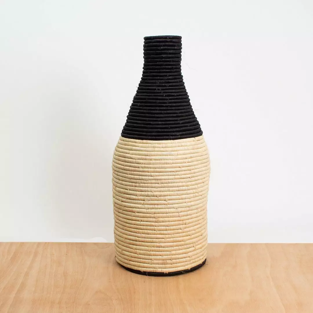 Intricately crafted with timeless tradition, this vase makes a stunning statement piece. One or more of these vases will make a globally conscious and stylistic addition to your home. Handwoven by a cooperative of women located in Uganda, this one of kind piece takes weeks to complete.