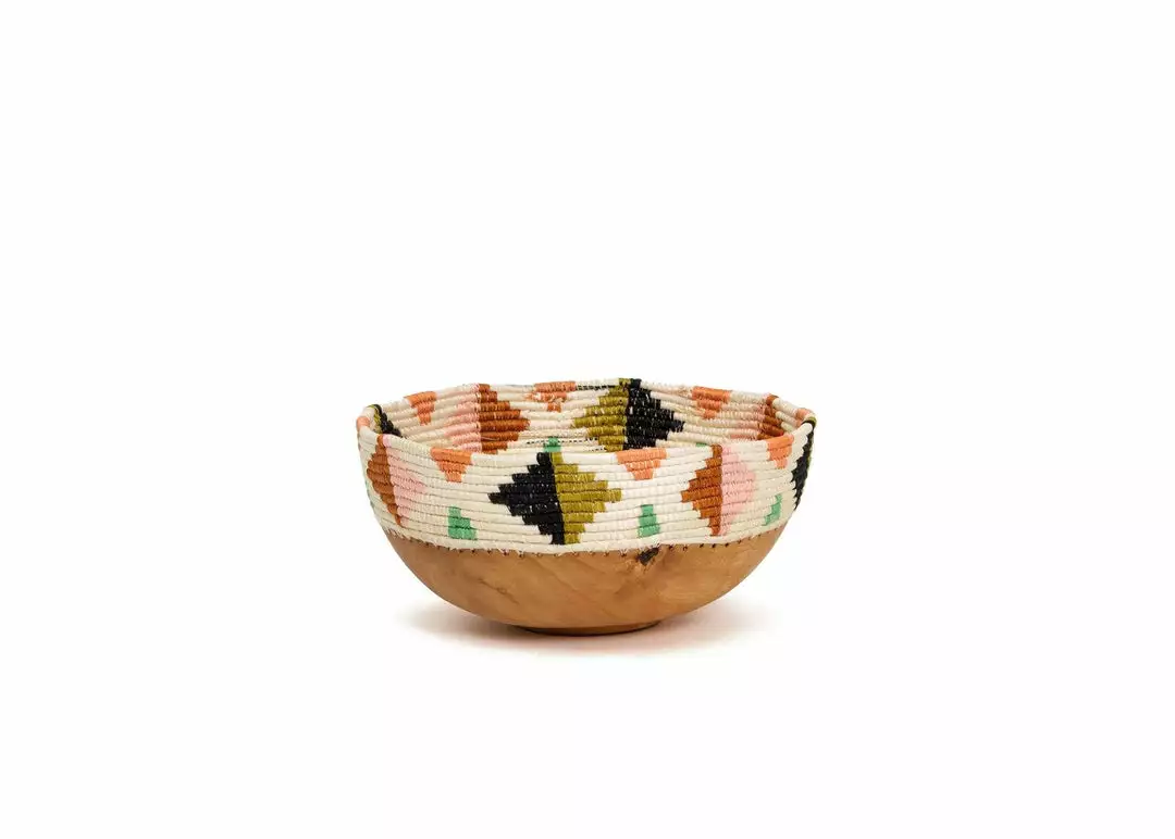 Intricately crafted with timeless tradition, this wood bowl is hand carved and sourced from an artisan in Rwanda who used local wood, sisal and sweet grass to create this decorative and traditional bowl.