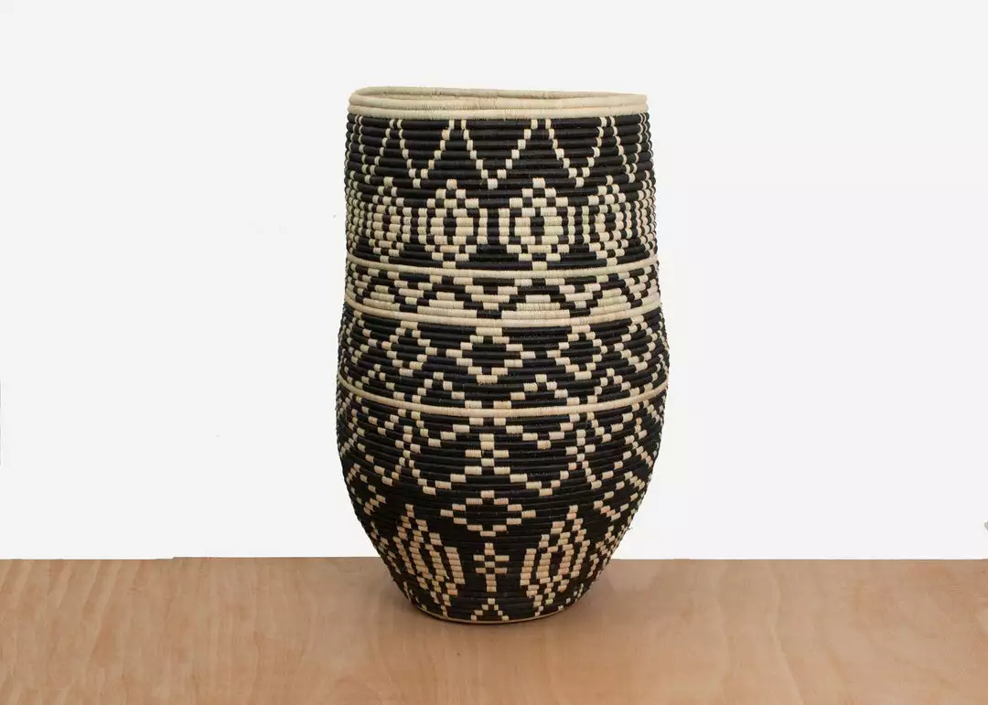 Made only in an ethical, fair trade environment. Handwoven by a cooperative of women located in Rwanda, this one-of-kind piece takes weeks to complete.
