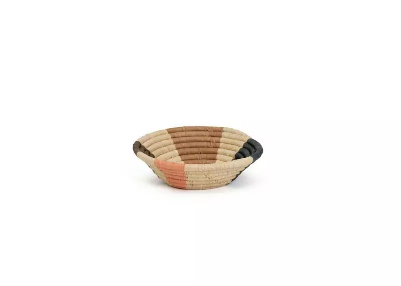 Intricately crafted with timeless tradition, this carefully dyed raffia fiber and sweet grass large bowl makes a stunning statement piece. Style it on a shelf for additional storage or decorate your wall for a globally inspired feel. This large bowl is the perfect fruit bowl, bread basket, or wall decoration. All products are made by hand with love and vary slightly in color and size.