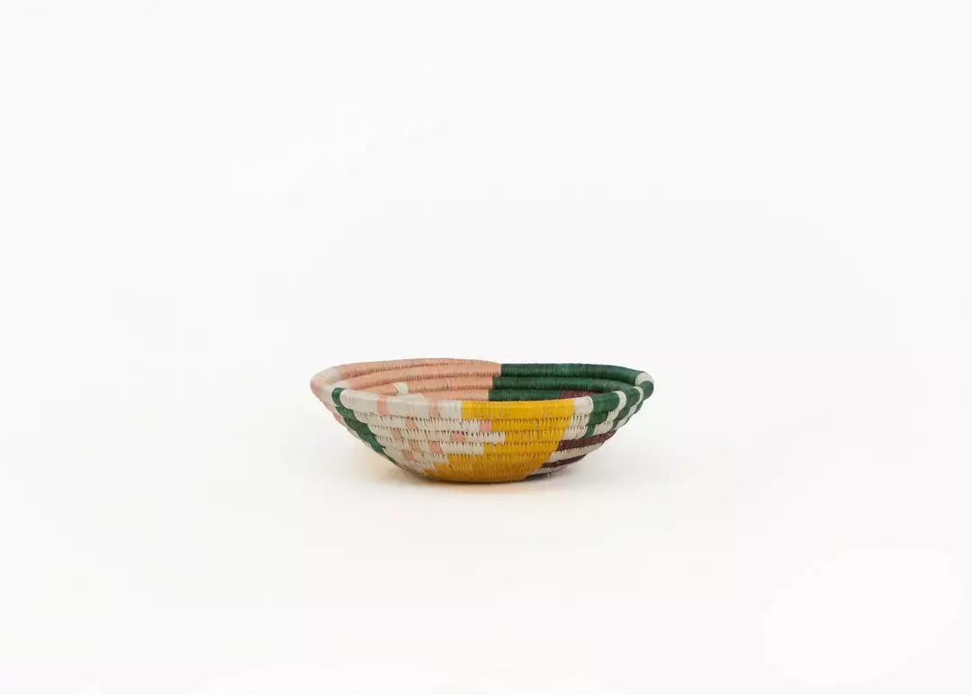 Style it on a shelf for additional storage or add it to your coffee table for a globally inspired feel. This small bowl is just the right size for a fruit bowl, keys, or wall hanging. All products are handmade and vary lightly in color and size.