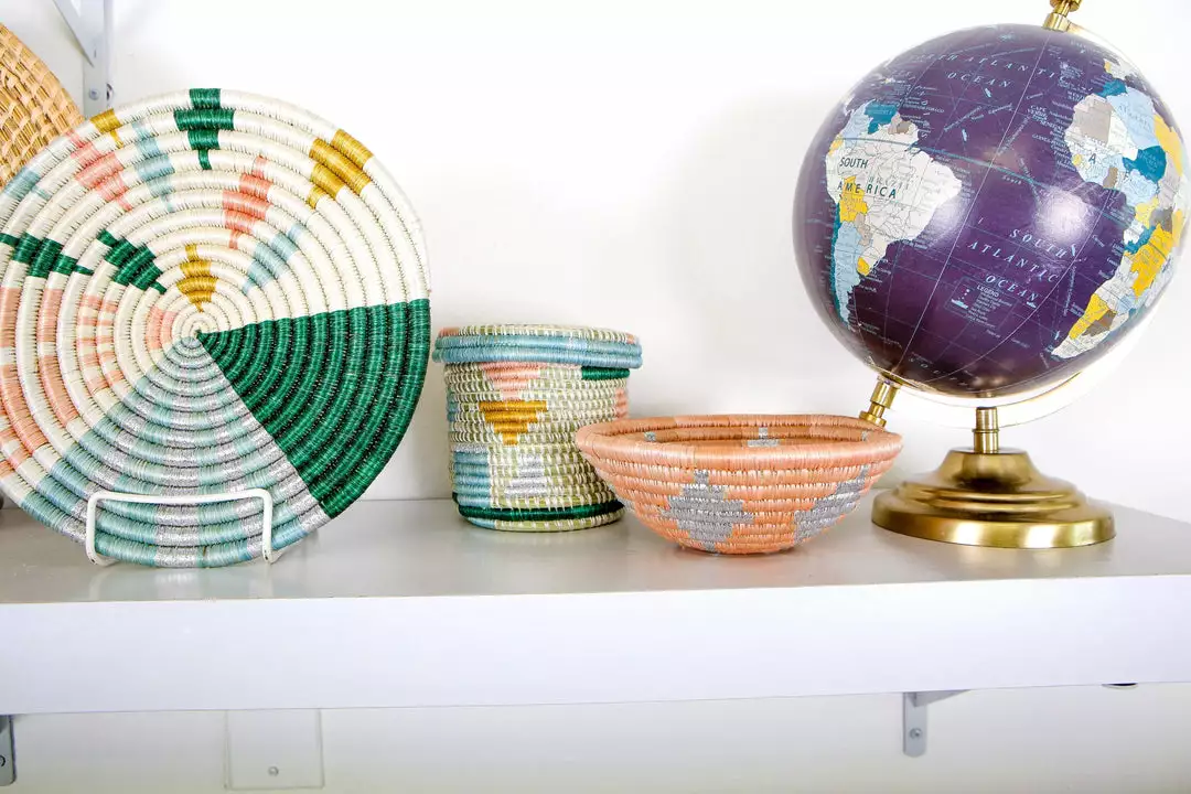This incredibly versatile bowl can transform any wall in your home. Pair with other woven bowls or plates for a vibrant and composed feel. This handmade basket is both accent decor for any bookshelf and desk organization in your home office.