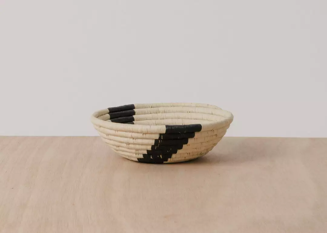Intricately crafted with timeless tradition, this carefully dyed raffia fiber and sweet grass small bowl makes a stunning statement piece. Style it on a shelf for additional storage or decorate your wall for a globally inspired feel. This small bowl is the perfect fruit bowl, bread basket, or wall decoration. All products are made by hand with love and vary slightly in color and size.