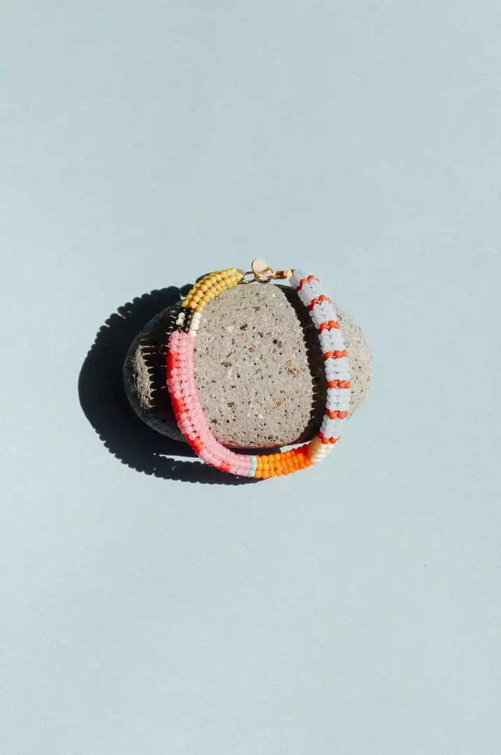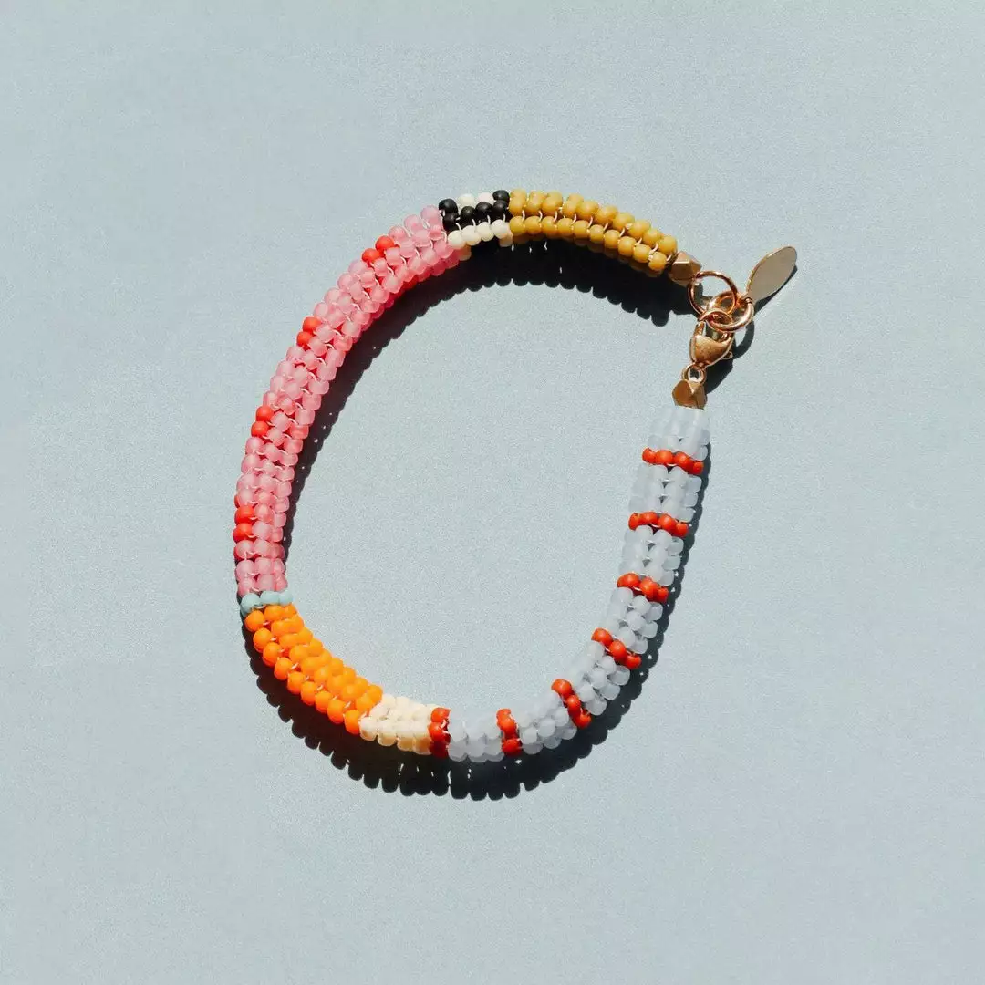 The Cuerda Bracelet is a handcrafted, one of a kind bracelet that will add lively color to any outfit. Each is handwoven to order out of high-quality Japanese glass beads, then finished with brass beads and gold-filled clasp. Variation is to be expected, although the colors and patterns will be similar to what is pictured, no two pieces are the same.