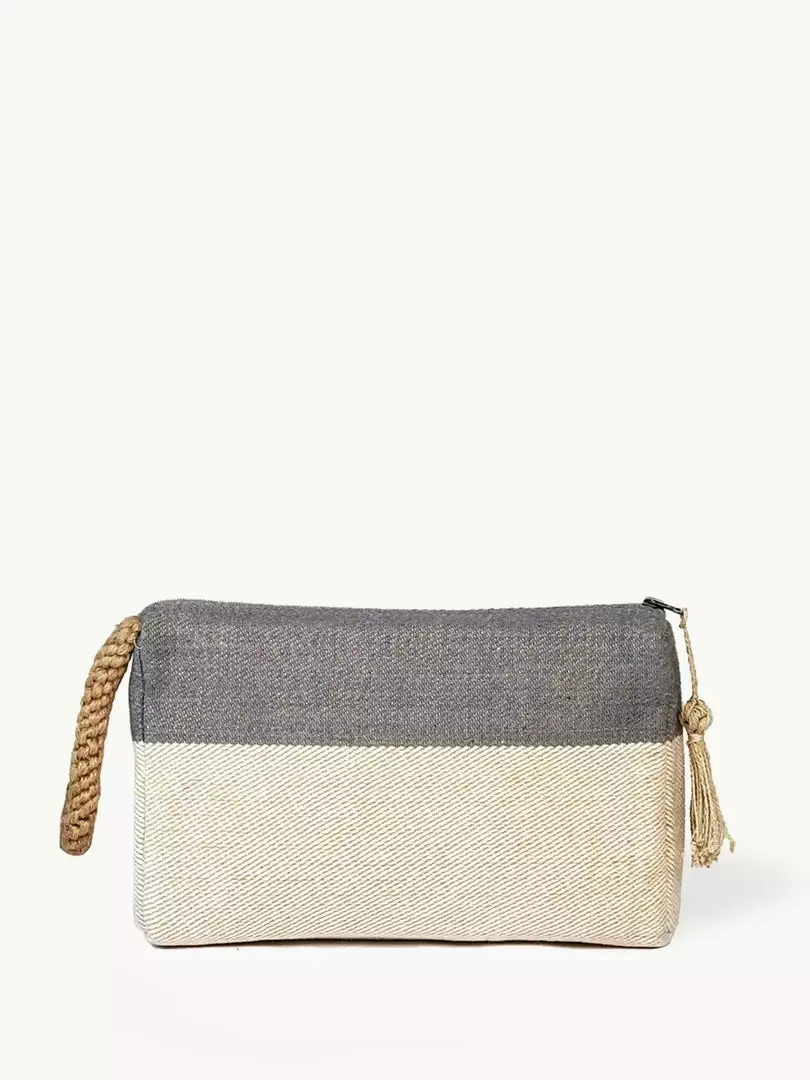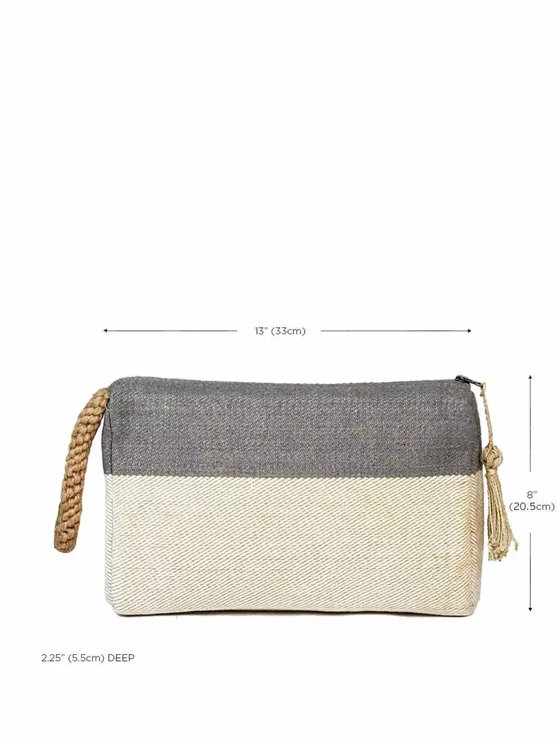 Playful color with soft jute-cotton fabric with oversize macrame accent handle and zipper enclosure, this clutch makes the perfect go-to accessory when you are on the go. Use this clutch to store all of your essentials in one place- phone, keys, wallet, make-up, notebook, or anything else you need to have handy. Due to the handcrafted nature, slight variation will occur in design, color, and size.