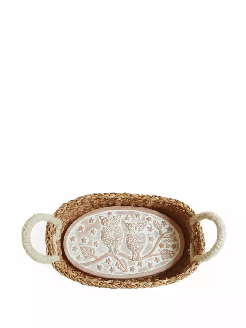 There’s nothing quite like the smell of warm bread on the weekend. Here, a terracotta plate has been engraved with the cute owls on a tree design and cut to fit neatly into an oval basket. This special bread warmer is naturally insulating, and the basket itself has been handwoven from sustainably grown seagrass. Variation is celebrated with handcrafted products.