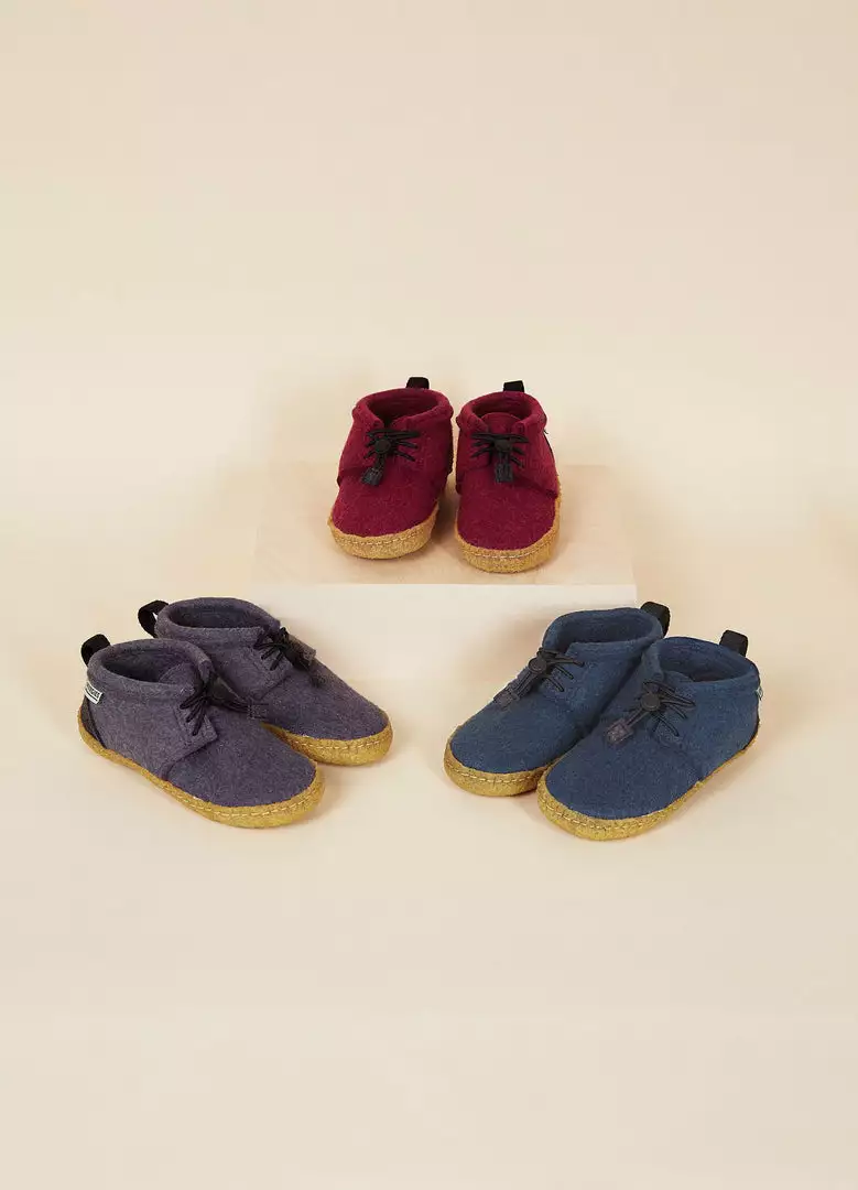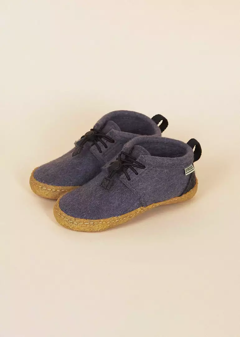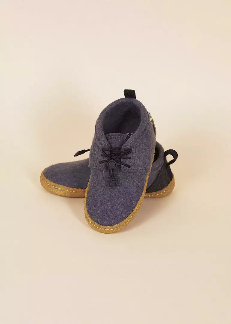 These slippers are lovingly handcrafted by artisans in Bishkek, Kyrgyzstan. Tengries are made from large sheets of wool felt that are cut and hand sewn into shape. With their non-slip rubber soles and elastic laces, they’re designed to mold snugly to little feet, while still allowing little ones to pull them on with ease.