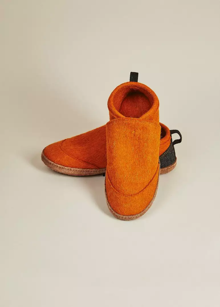 These slippers are crafted by hand using super soft and pliable wool. The felt in Tengries is soft and pliable, so it will fit your feet like a warm hug. Tengries are kept snug by an elastic that helps them form to your feet. These feature high-backs, and a pull-on tab.