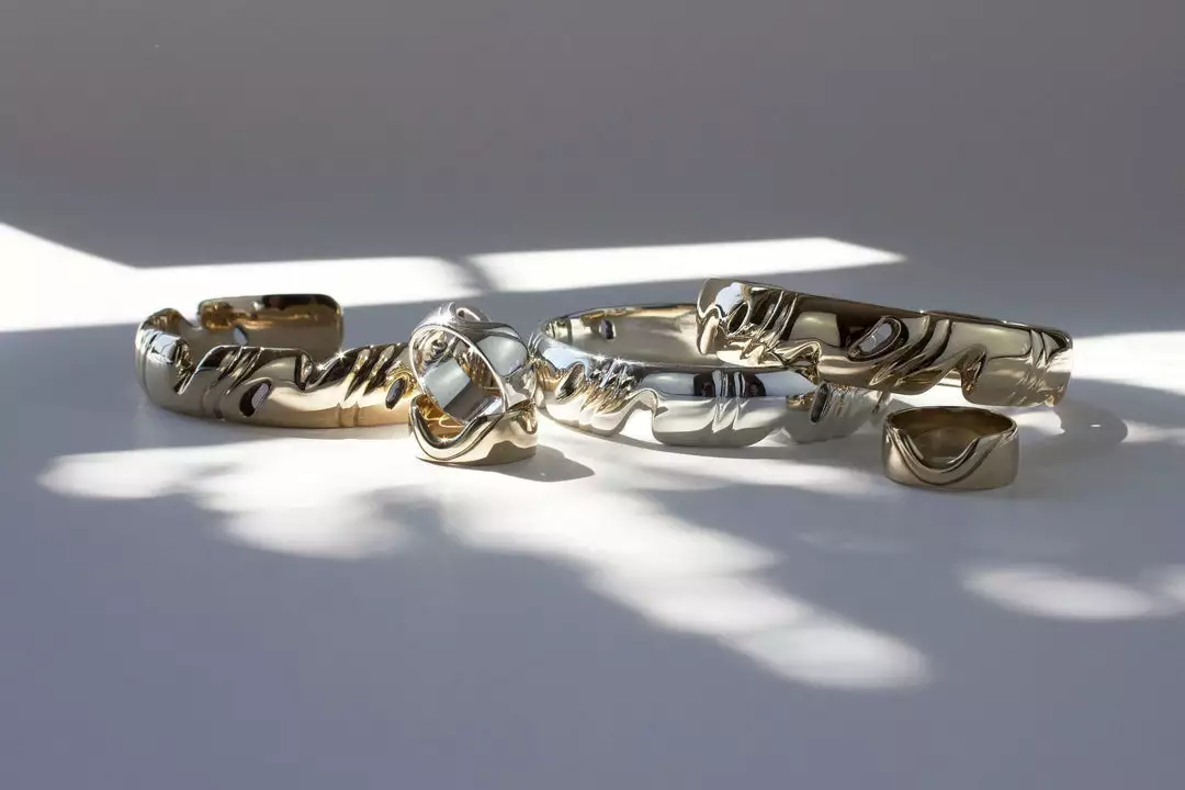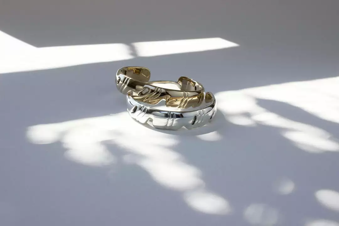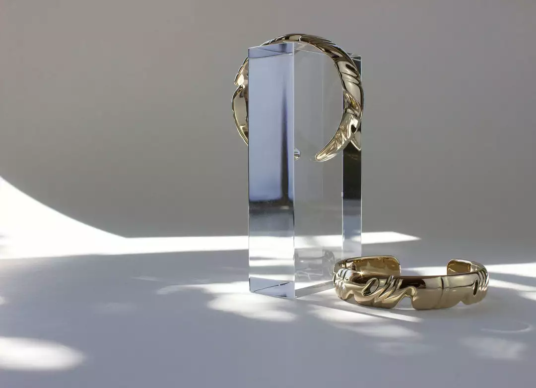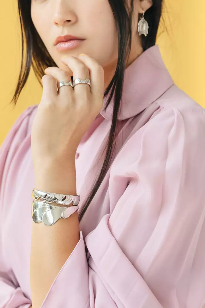 Inspired by the fenestrations of the Monstera plant, the Abstract Monstera Cuff is hand-carved in wax and cast.