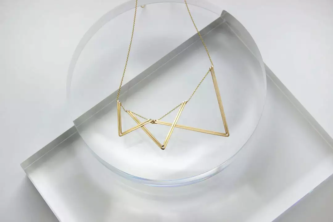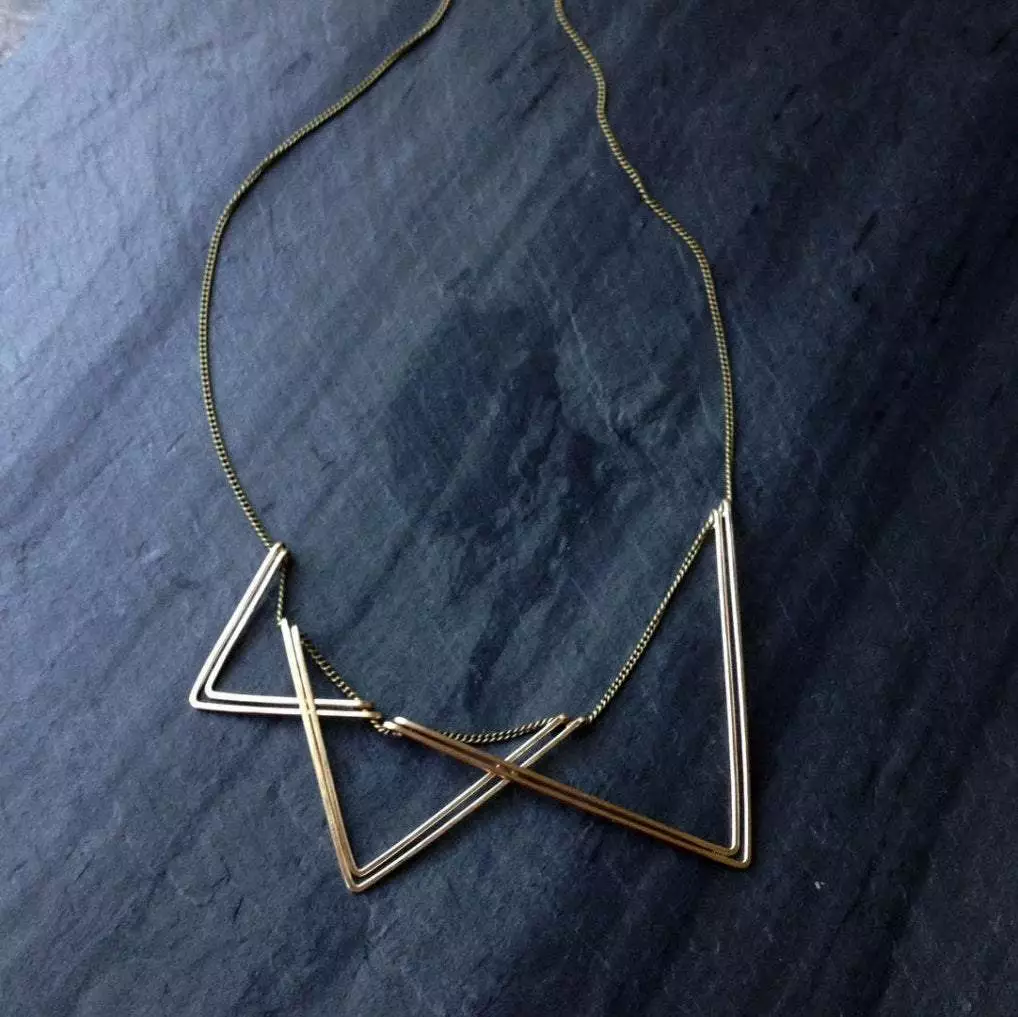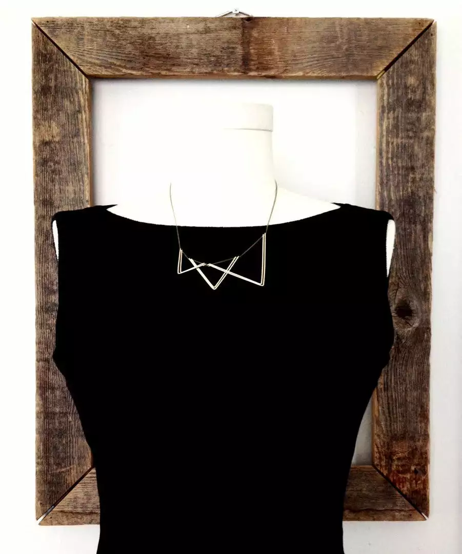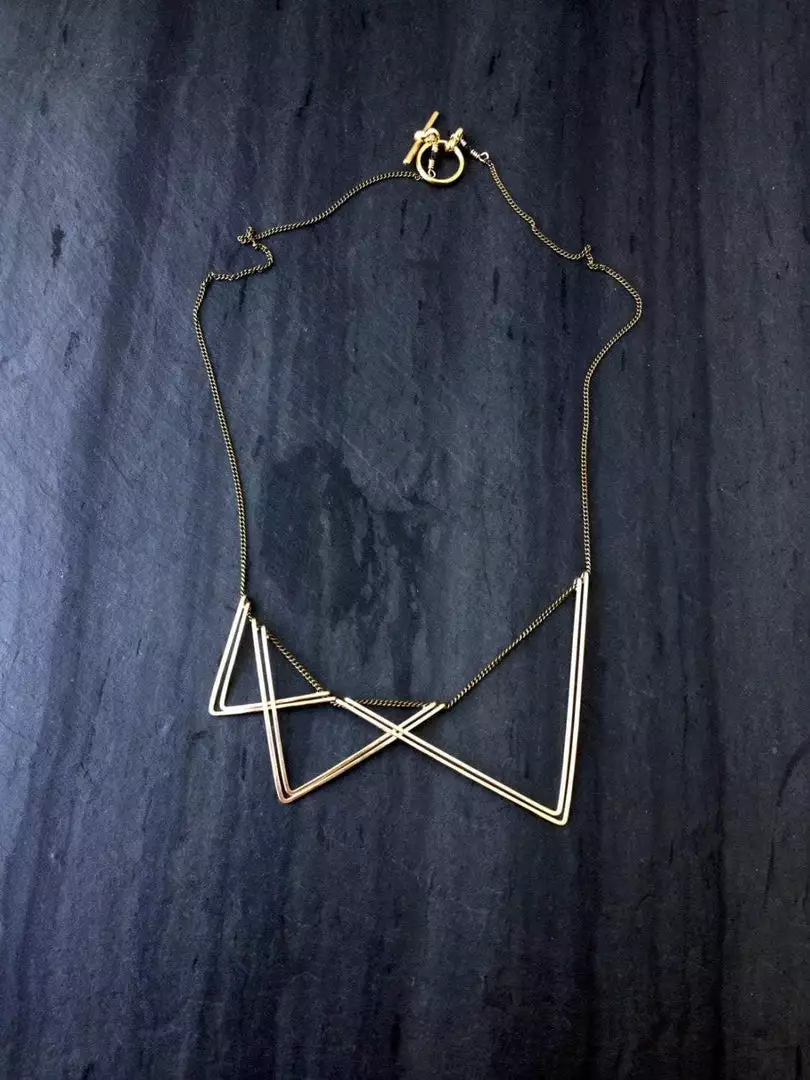 This geometric, statement necklace adds shine and interest to any outfit. Dress it up for a night out or pair them with a t-shirt and jeans.