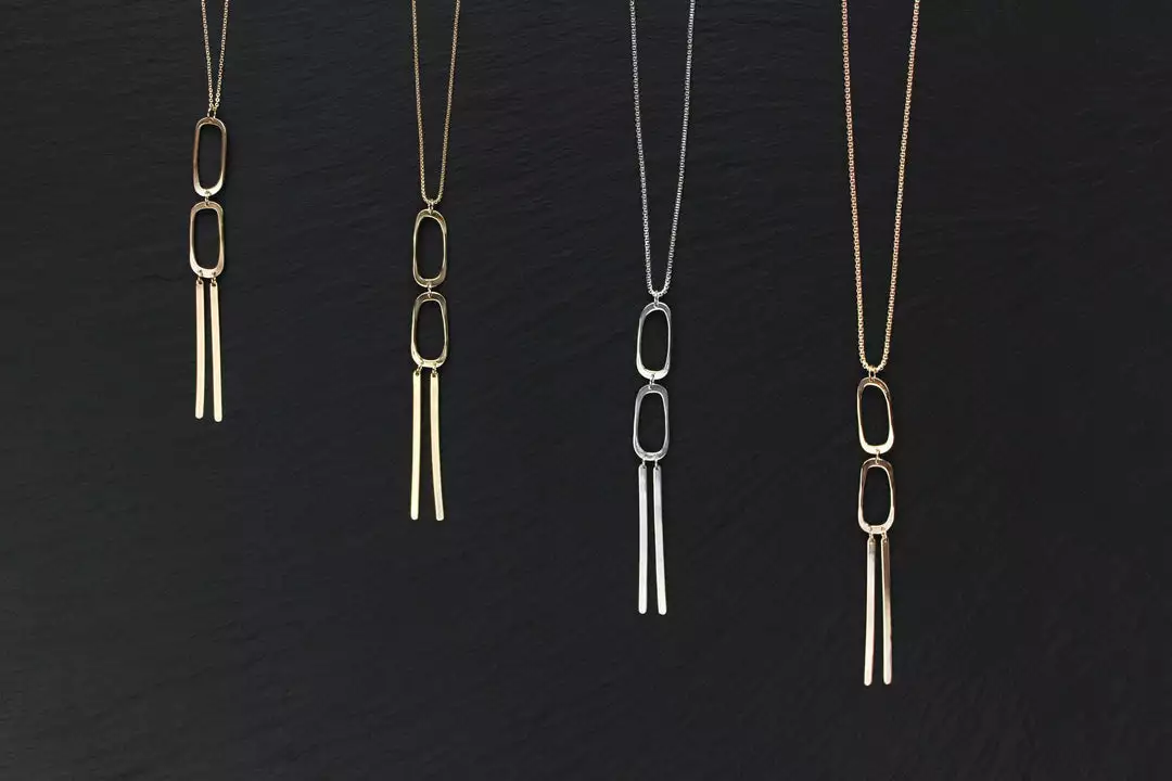 This architectural statement necklace is classic and unique. Easily dressed up for a night out or worn with a t-shirt and jeans to add shine to a casual look.