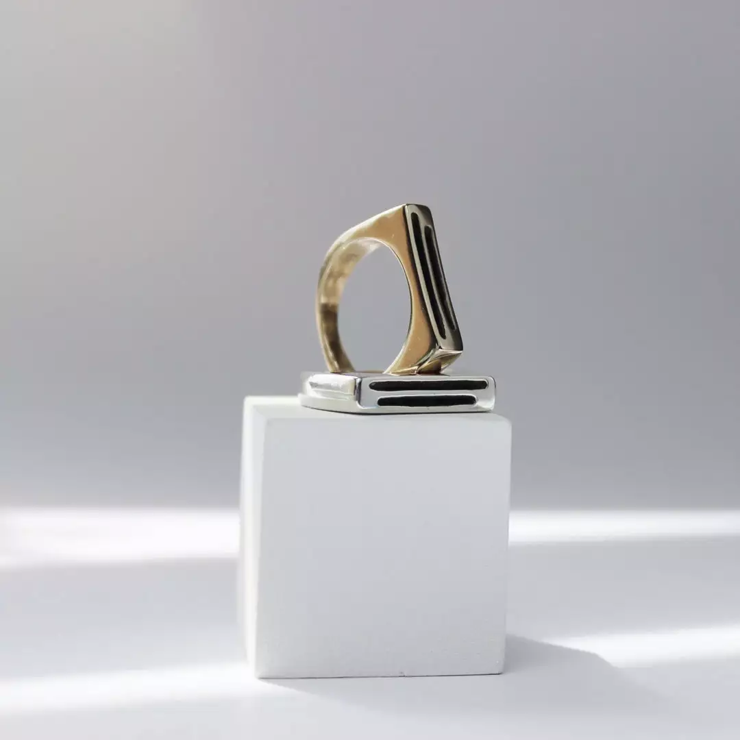 This architectural statement ring is sculpted and carved in wax by hand and cast via lost wax casting. It is perfect for everyday wear and can be dressed up or down with ease.