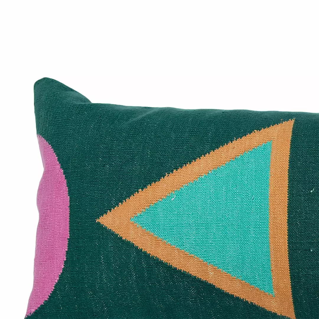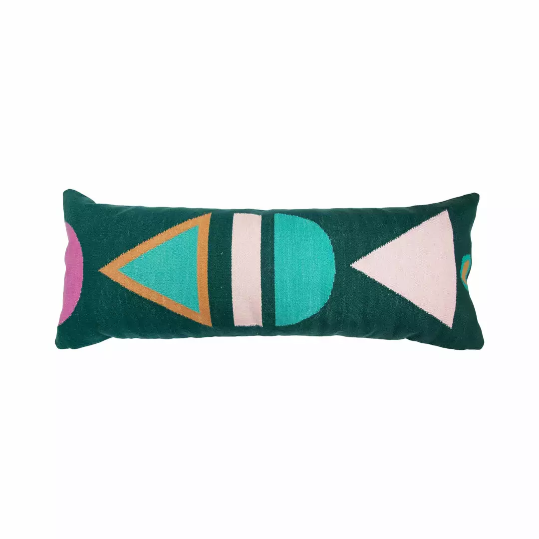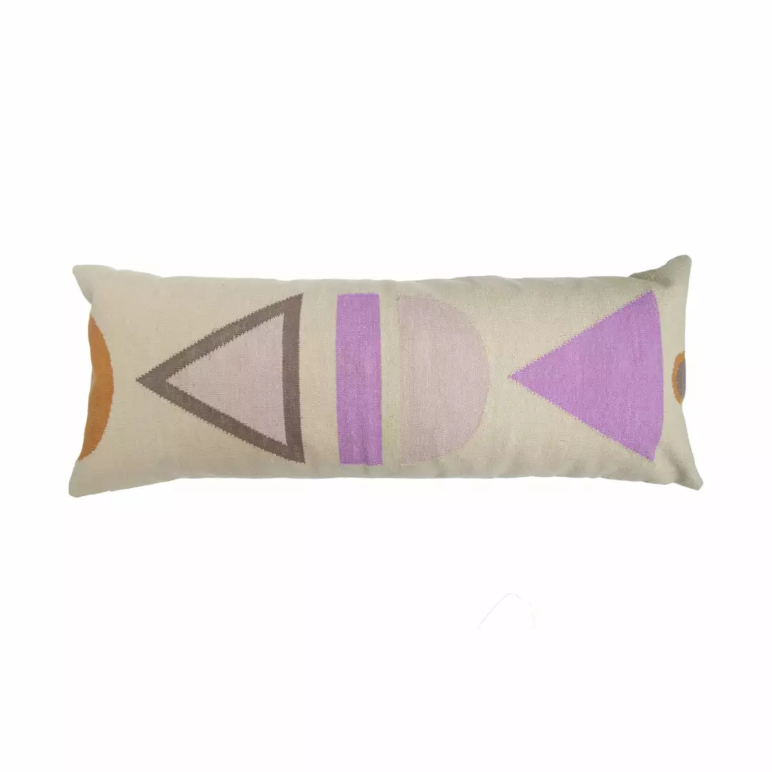 The Dana XL Lumbar Pillows are extra long to style on your couch, bed, or on a bench. The playful colors and geometric design will add a lively touch of color and movement to any space in your home. Each cover has been ethically hand woven by artisans in Rajasthan, India, using a traditional weaving technique which is native to this region. Each piece may vary slightly due to the nature of handcrafted goods.