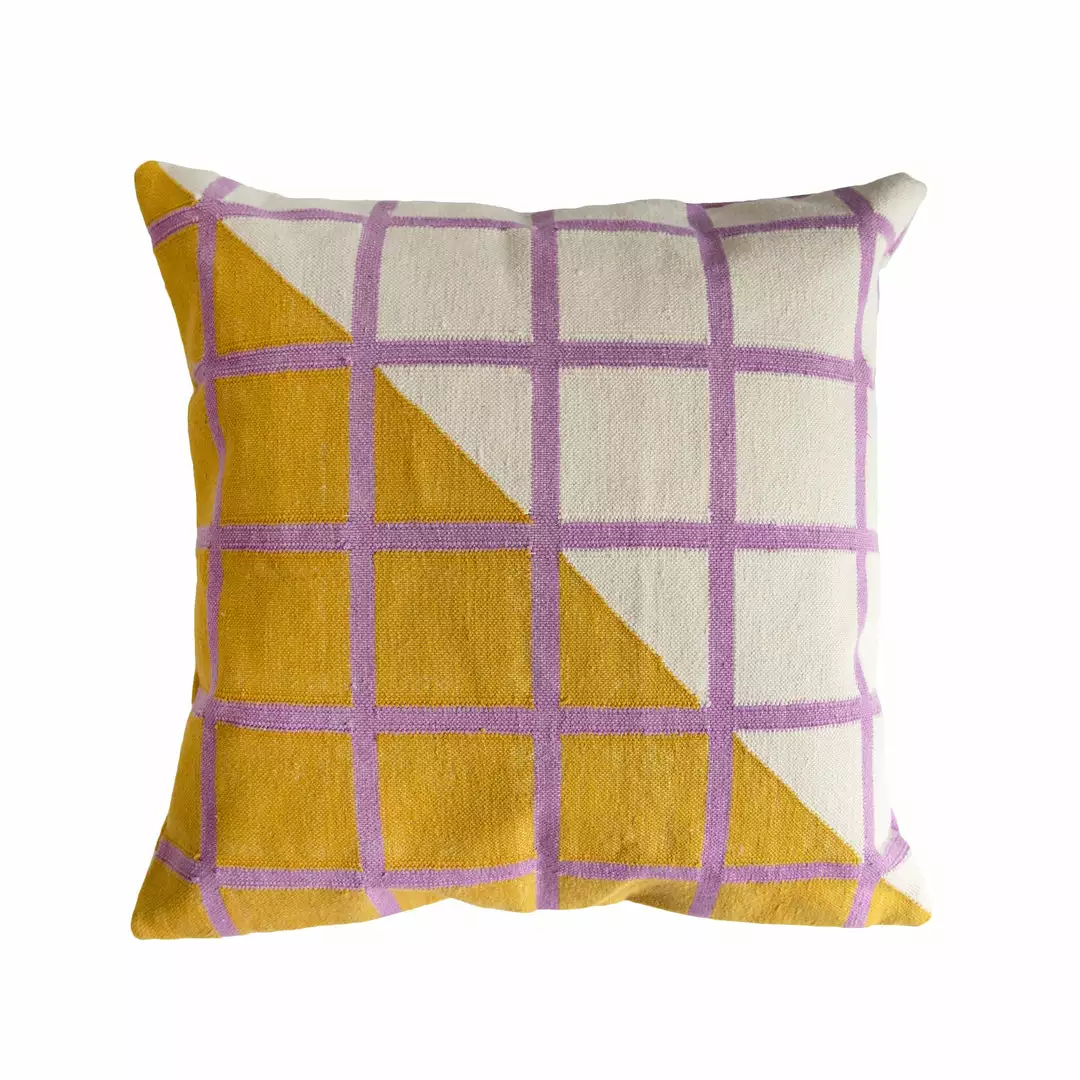 The Diagonal Grid Reversible Throw Pillow is a modern geometric throw pillow cover that adds a subtle touch of color to your space. This handcrafted pillow is reversible, giving you two styles in one for dynamic home decor. The grid pillows are ethically hand woven by artisans in Rajasthan, India, using a traditional weaving technique which is native to this region. Each piece may vary slightly due to the nature of handcrafted goods.
