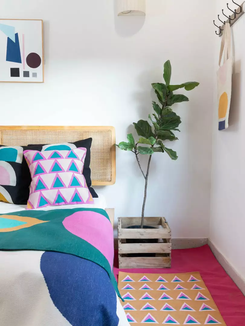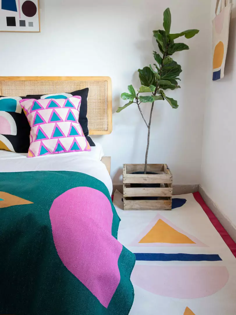 This geometric throw pillow has been ethically hand woven by artisans in Rajasthan, India, using a traditional weaving technique which is native to this region. Each piece may vary slightly due to the nature of handcrafted goods.
